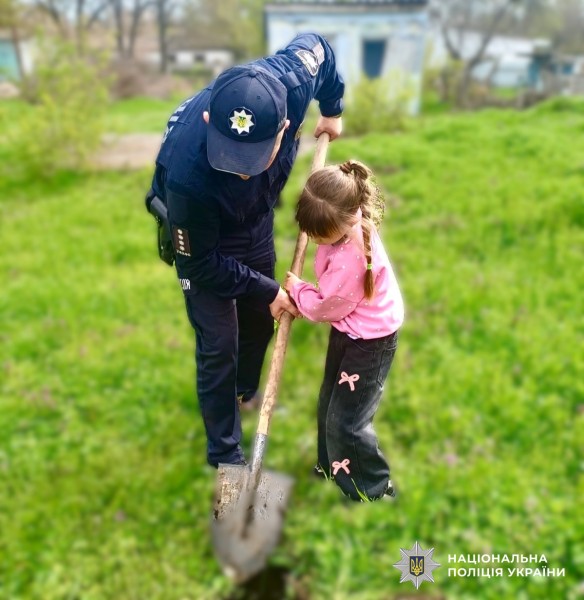 Озеленення та турбота: на Вознесенщині поліцейський разом із учнівською молоддю долучилися до благоустрою території закладів