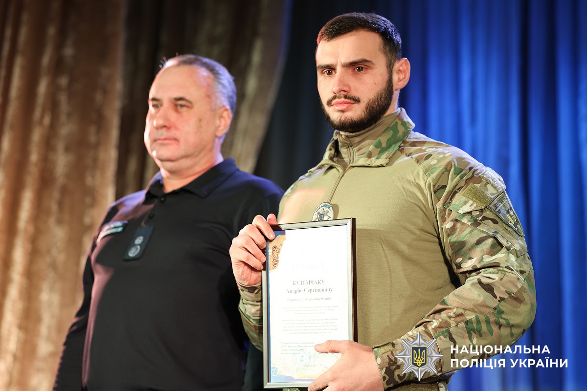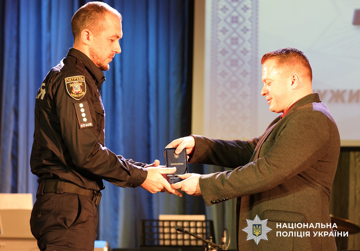 Гості вручили патрульним відзнаки та нагороди за сумлінну та віддану службу українському народу, як в нашій області, так і в прифронтових регіонах, де патрульні поліцейські виконують бойові завдання у складі Сил безпеки та оборони України.