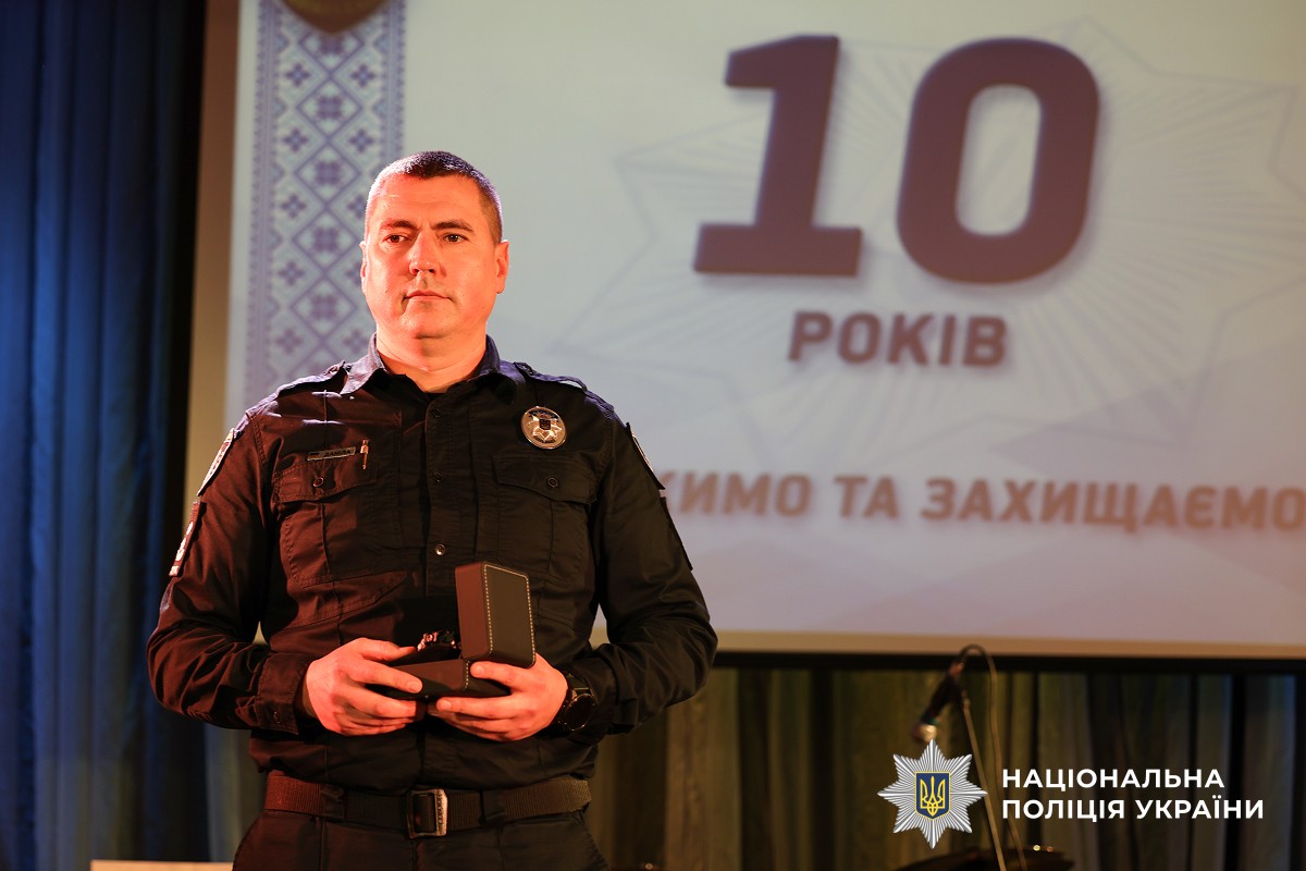 З річницею колег привітав та вручив відомчі нагороди – годинники, заохочувальні відзнаки та подяки заступник начальника Головного управління Національної поліції в Миколаївській області Віталій Даніла.