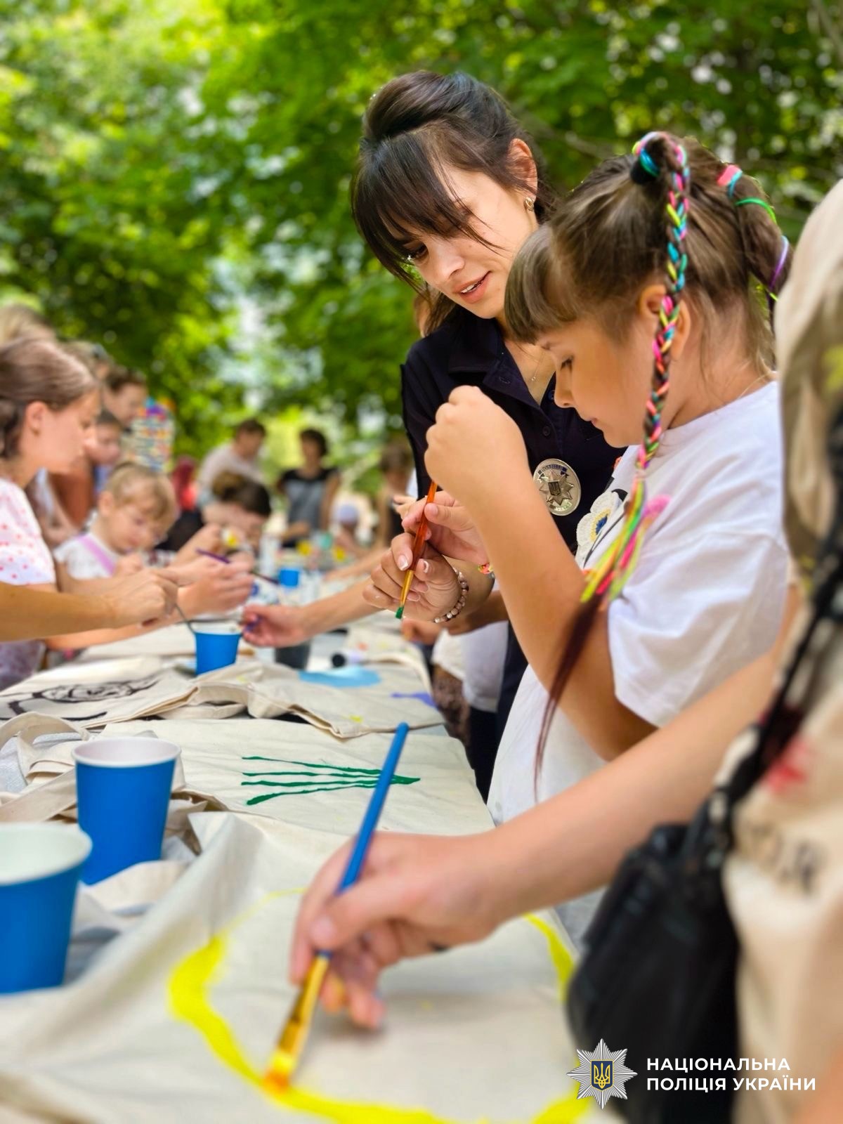 Організували творчу подію «Арт-дворик» поліцейські на чолі зі старшою інспекторкою з дотримання прав людини Баштанського районного відділу поліції ГУНП в Миколаївській області Трюхан Ольгою та за підтримки молодіжної ради при Баштанській міській раді. Захід об’єднав дітей і дорослих навколо мистецтва, корисного дозвілля та важливих тем безпеки.