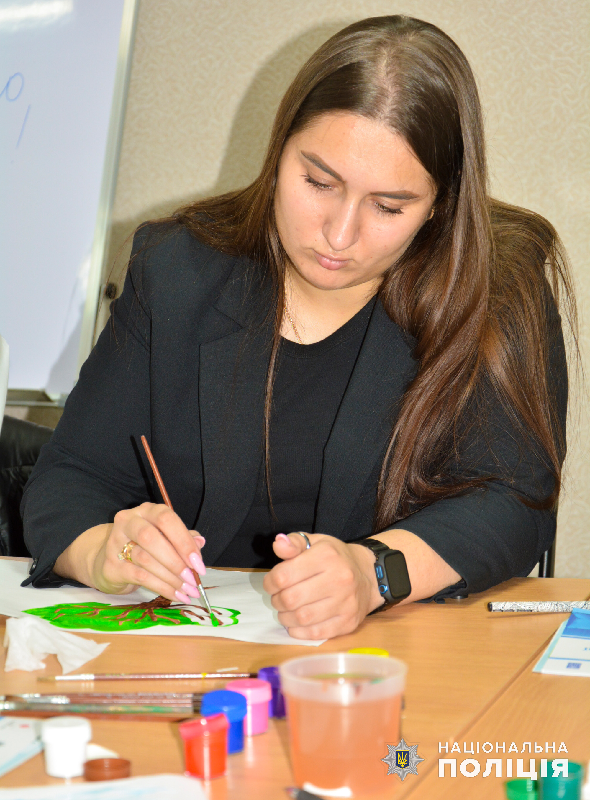Творча вправа дозволила учасницям виразити свої емоції, зняти напругу та відновити внутрішні ресурси. Крім того, поліцейські психологи поділилися з колегами корисними порадами та практичними вправами, які допоможуть їм самостійно справлятися із емоційними труднощами та кризовими ситуаціями.