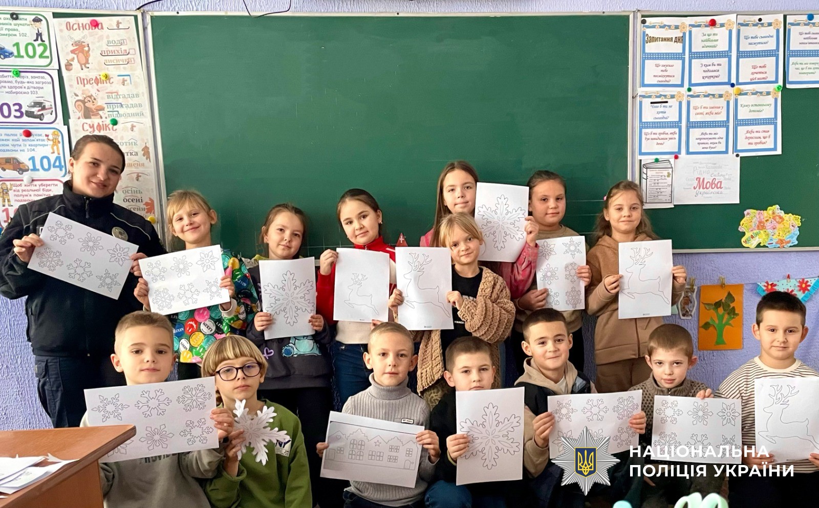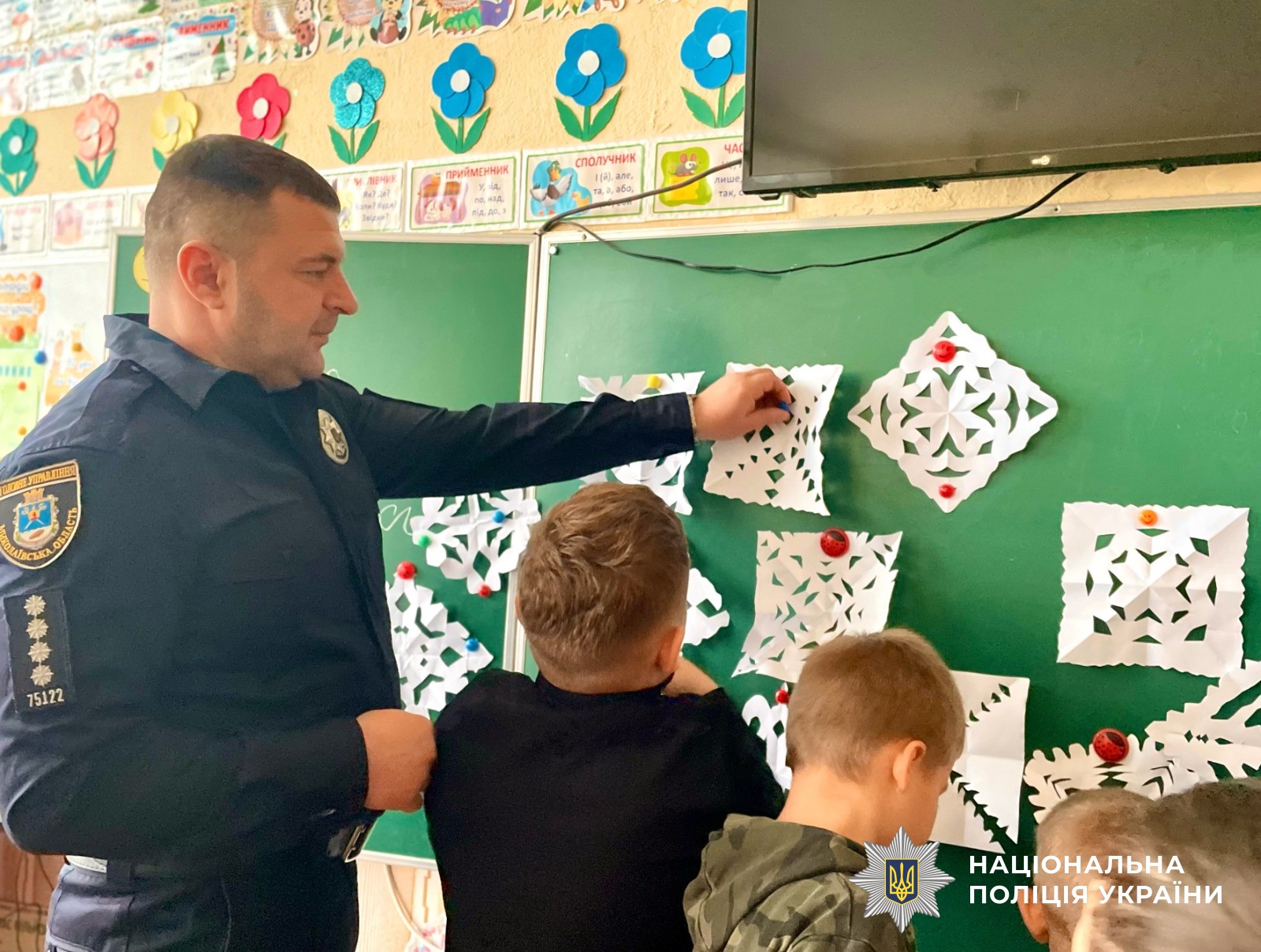 Атмосфера свят та емоційна підтримка: на Первомайщині поліцейські разом з дітьми прикрашали навчальні класи зимовими прикрасами