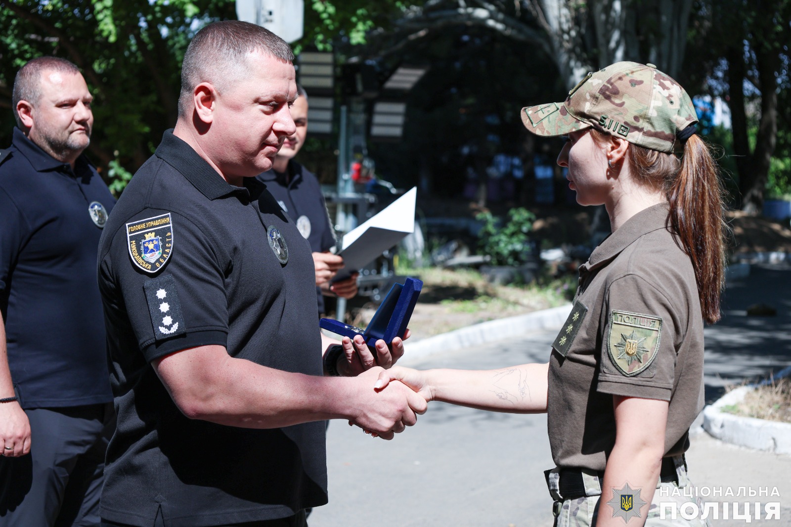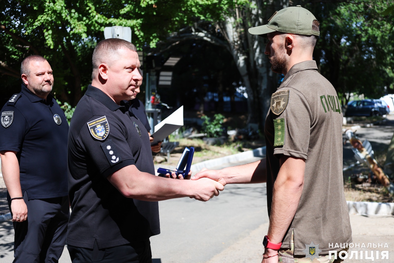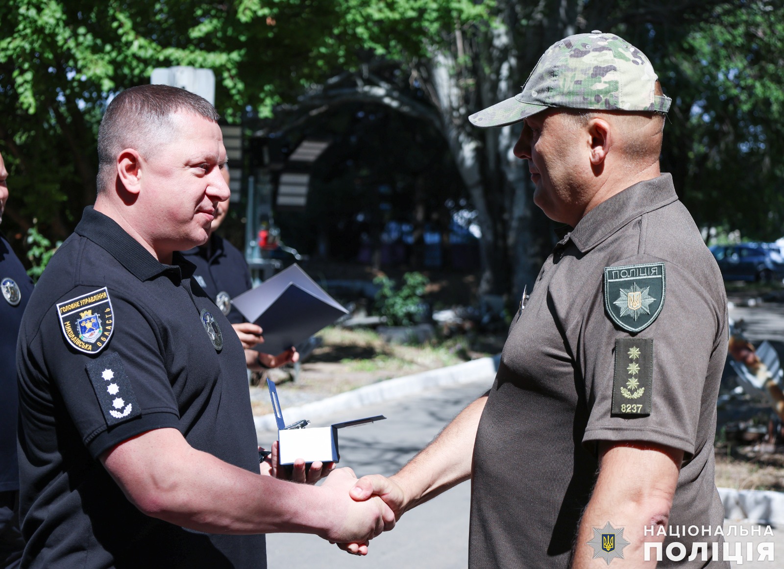 З нагоди професійного свята, начальник обласного главку поліції Сергій Махно відзначив правоохоронців вибухотехніків за мужність та відвагу відомчими відзнаками, подяками та цінними подарунками – наручними годинниками.