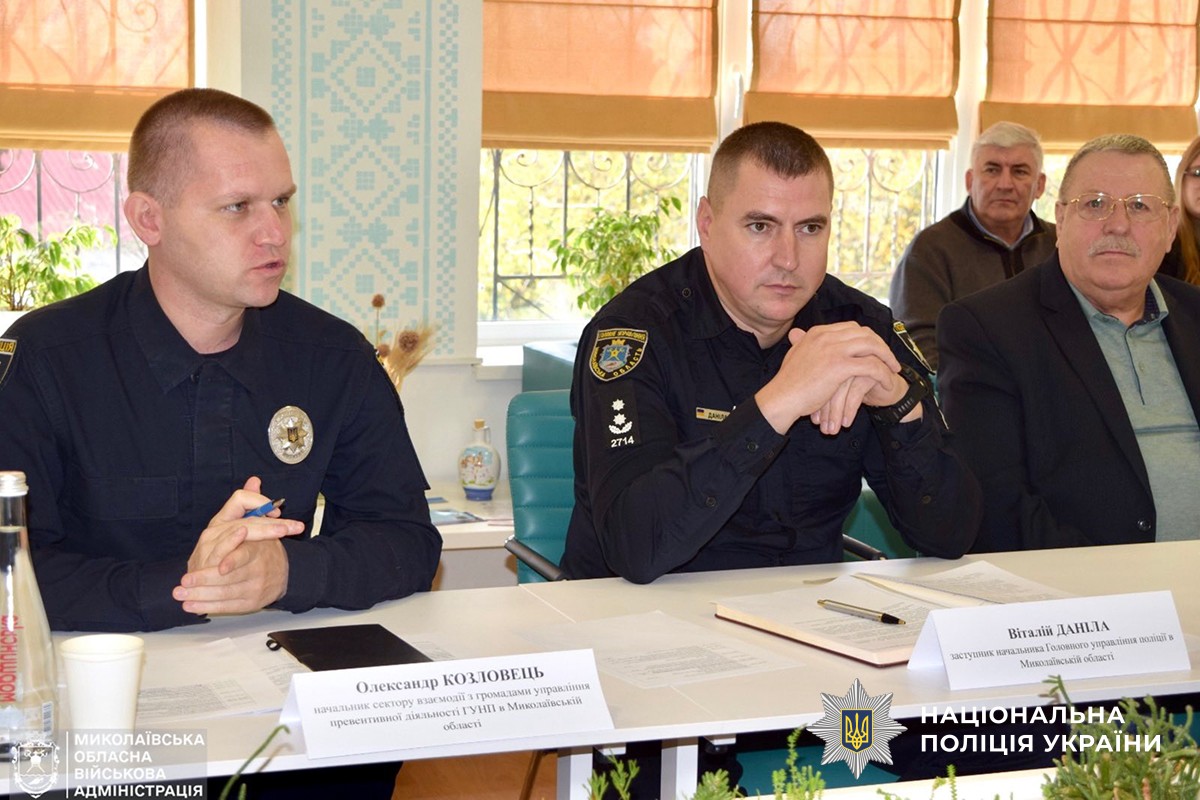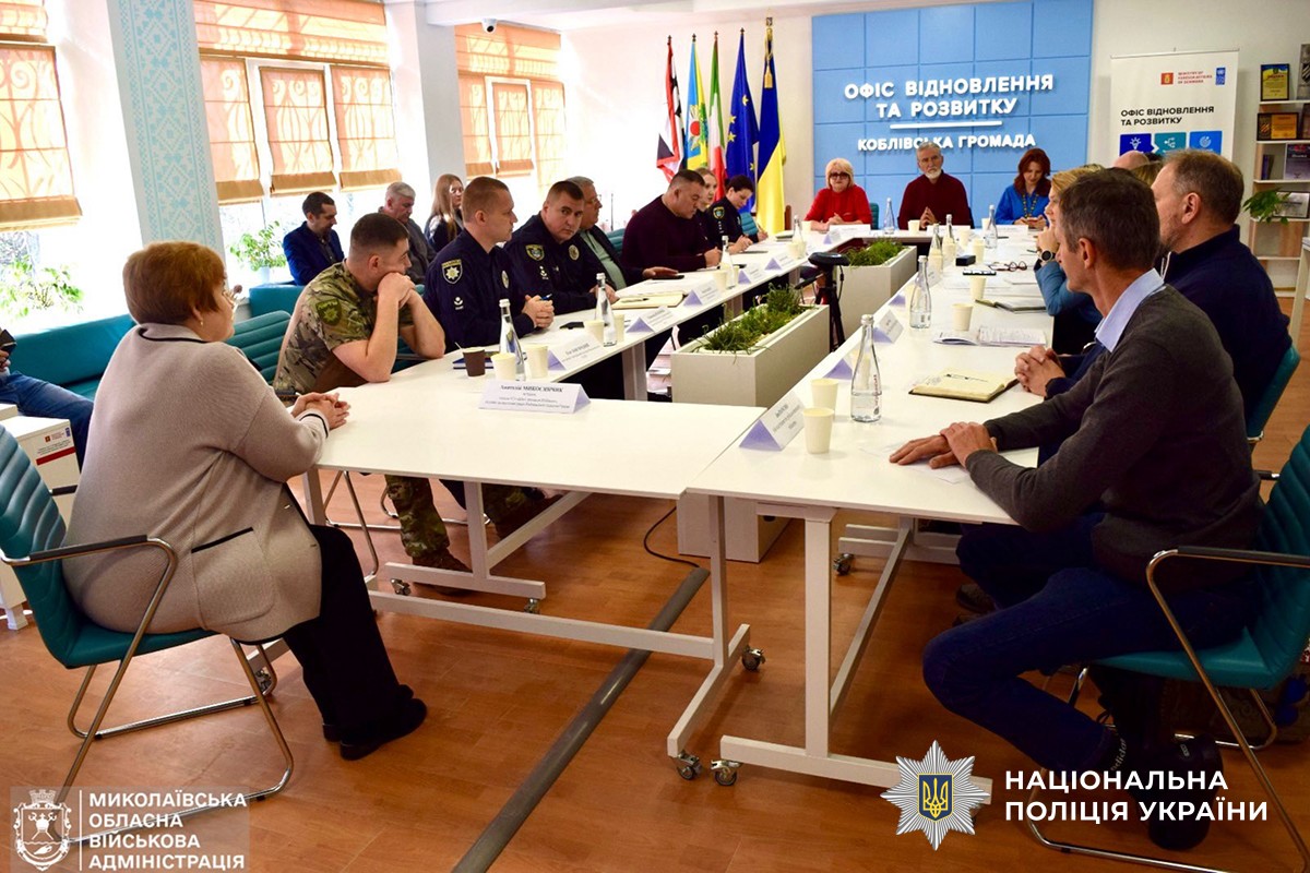Учасники заходу приділили увагу питанням відновлення інфраструктури та безпеці у громаді. У свою чергу, поліцейські подякували іноземним партнерам за надану технічну допомогу та організацію і проведення різноманітних тренінгів для правоохоронців Миколаївщини.