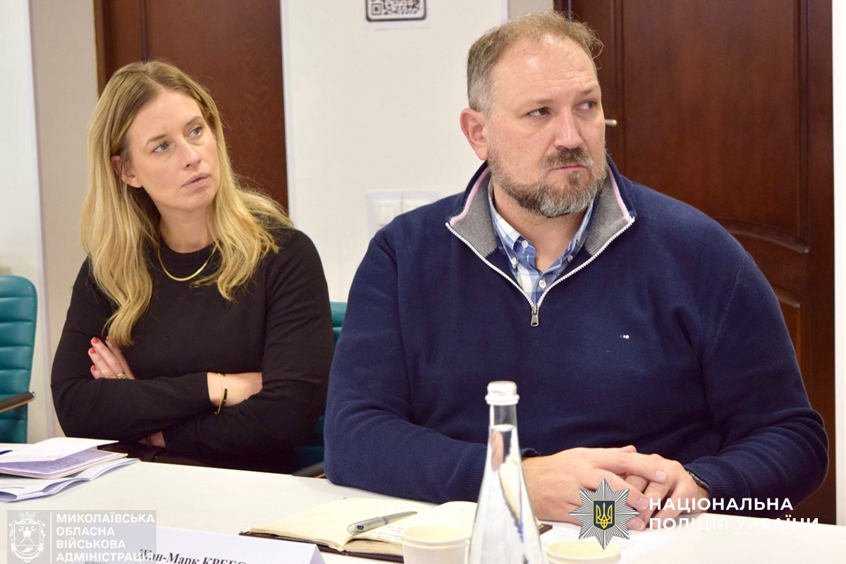 У робочій зустрічі з іноземними колегами, взяли участь заступник керівника обласного главку поліції Віталій Даніла, консультант з ветеранської політики Олег Завгородній, керівник сектору взаємодії з громадянами управління превентивної діяльності поліції регіону Олександр Козловець, поліцейські офіцери Коблівської громади Віталій Стойков та Віталій Обращенко, заступники начальника та керівники структурних підрозділів Миколаївської обласної військової адміністрації.