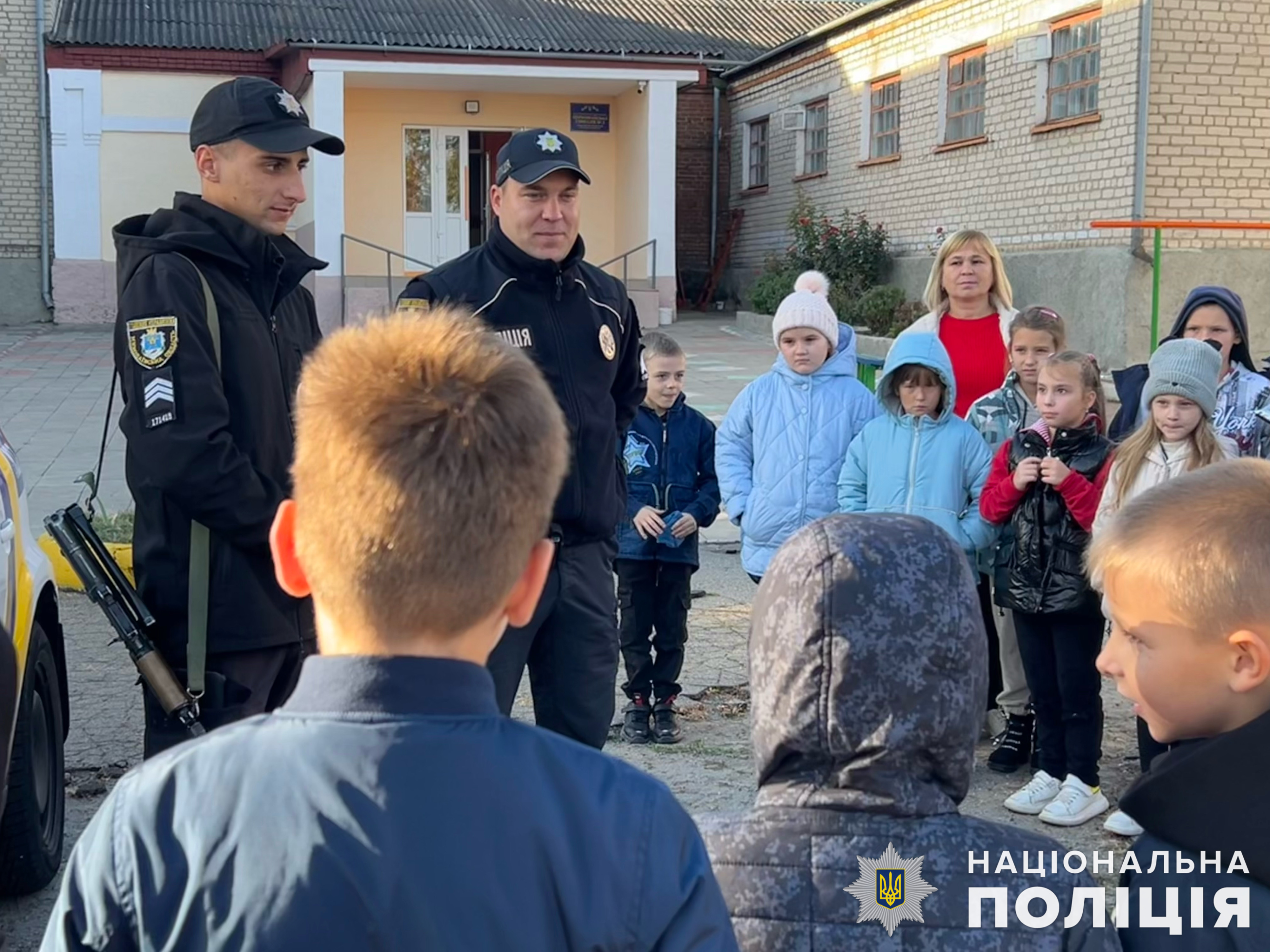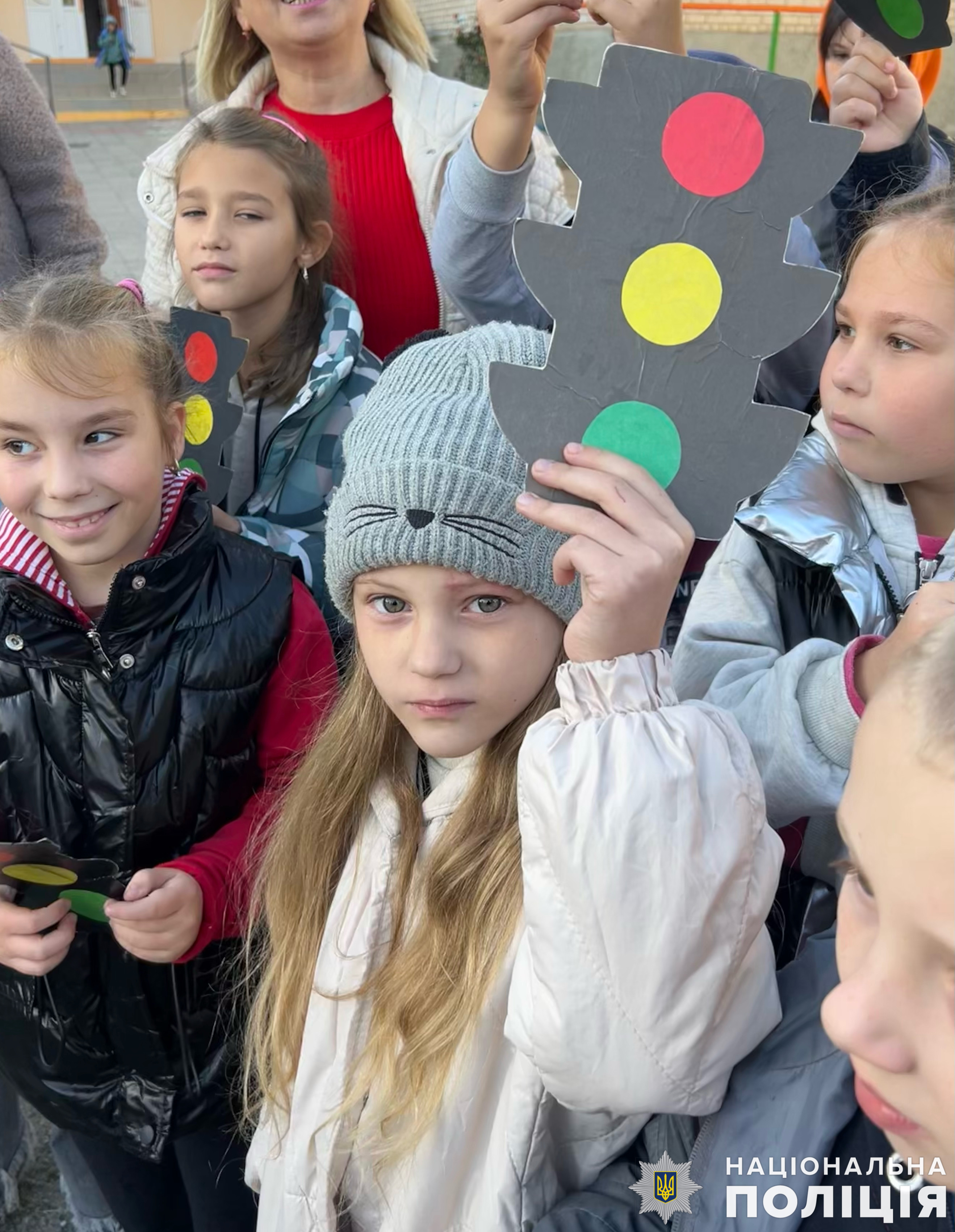 Зважаючи на те, що більшість із присутніх дітей самостійно ходять до школи, правоохоронці нагадали, що учні повинні завжди дотримуватись Правил дорожнього руху, а головне - де і як переходити дорогу. Разом із поліцейськими хлопчики й дівчатка повторили значення сигналів світлофора та дорожніх знаків. Також інспектори поліції звернули увагу, що з настанням осені темніти починає раніше, видимість на дорогах помітно погіршується, тому доречно щоб на одязі, взутті чи рюкзаку були світловідбиваючі елементи або наліпки.