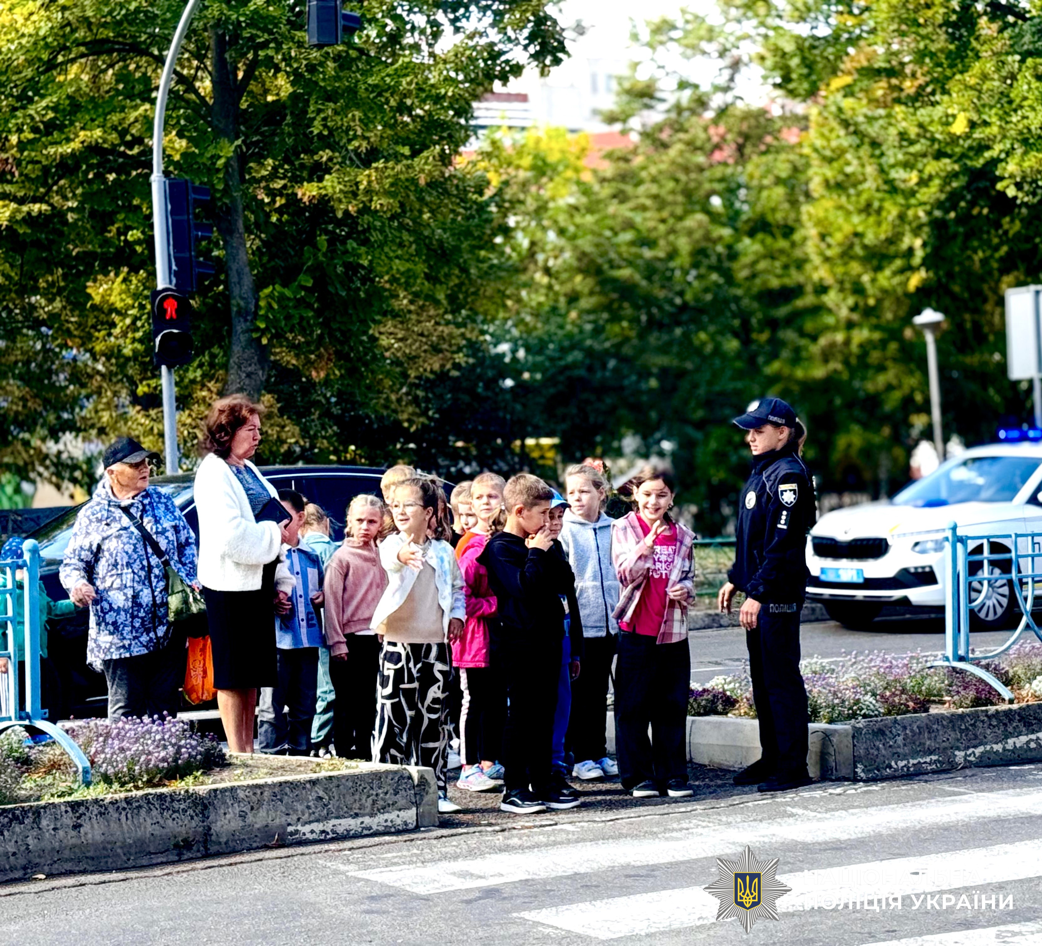 Наприкінці заходу поліцейська разом із ліцеїстами закріпили знання на практиці – діти вийшли на вулицю та під наглядом офіцерки відпрацювали правила переходу дороги.