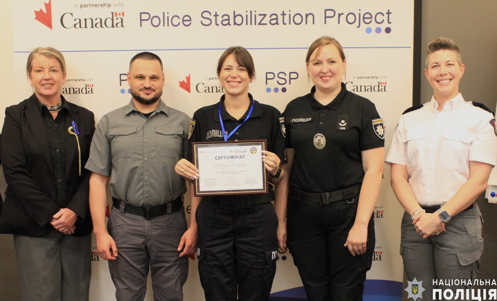 Канадські поліцейські та тренери: Дженіс Грей (головна суперінтендантка Королівської канадської кінної поліції у відставці, з досвідом у поліції 35 років), Джон Робін (головний суперінтендант Королівської канадської кінної поліції у відставці, з досвідом у поліції 38 років), Блер Шмідт (керівниця Канадської поліцейської місії в Україні (CPMU) та Катерина Каймашнікова (заступниця директора PSP), а також майстер-тренери програми психологічної підтримки поліцейських «Рівний-Рівному» поділилися своїм досвідом та знаннями з офіцерами Служби освітньої безпеки.