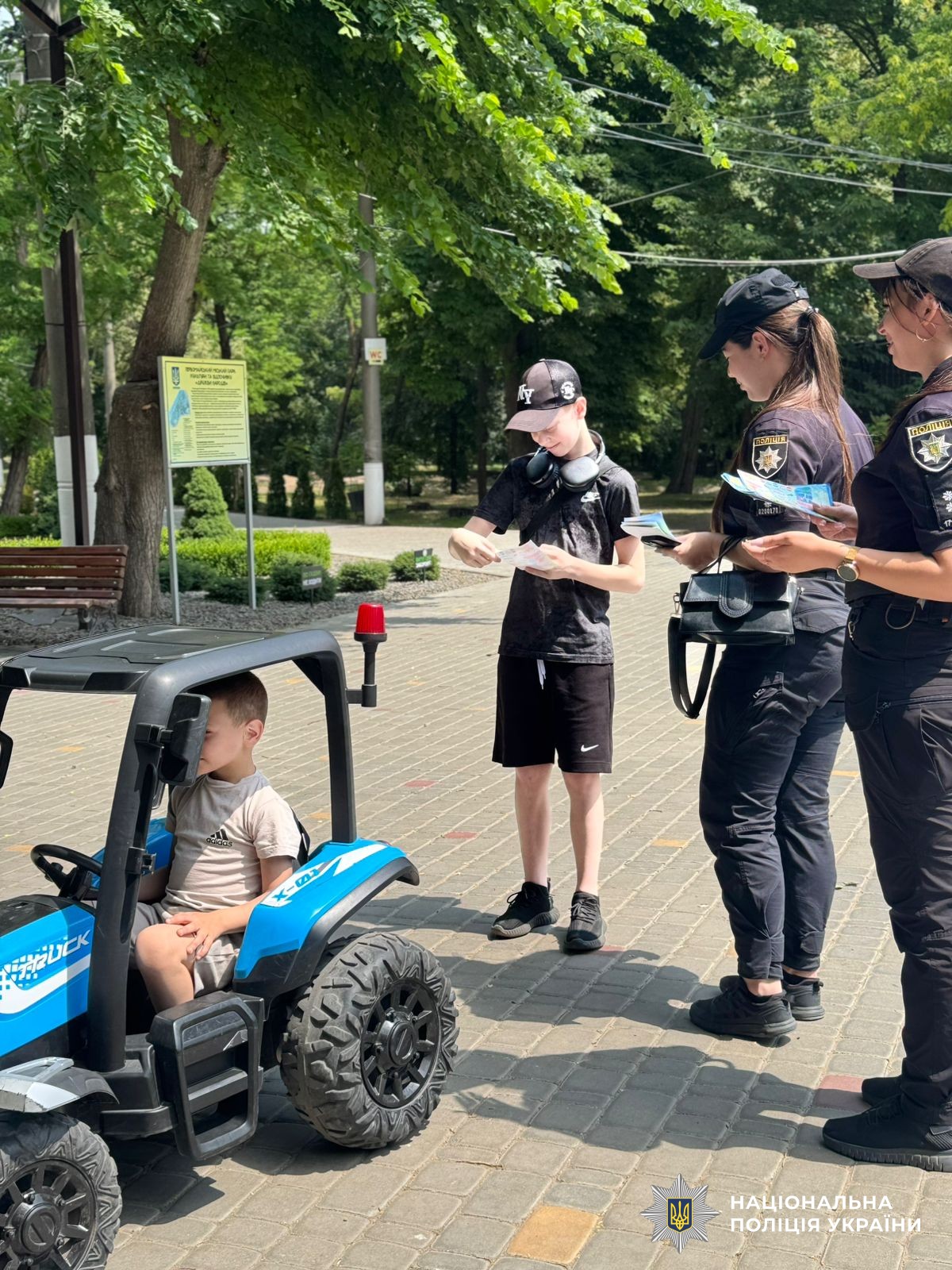 У літній період, коли діти мають більше вільного часу та все більше часу проводять на свіжому повітрі, особливо важливо нагадувати їм про основи безпечної поведінки. Саме з такою метою офіцерки служби освітньої безпеки Первомайського районного відділу поліції провели профілактичний захід у міському парку відпочинку.