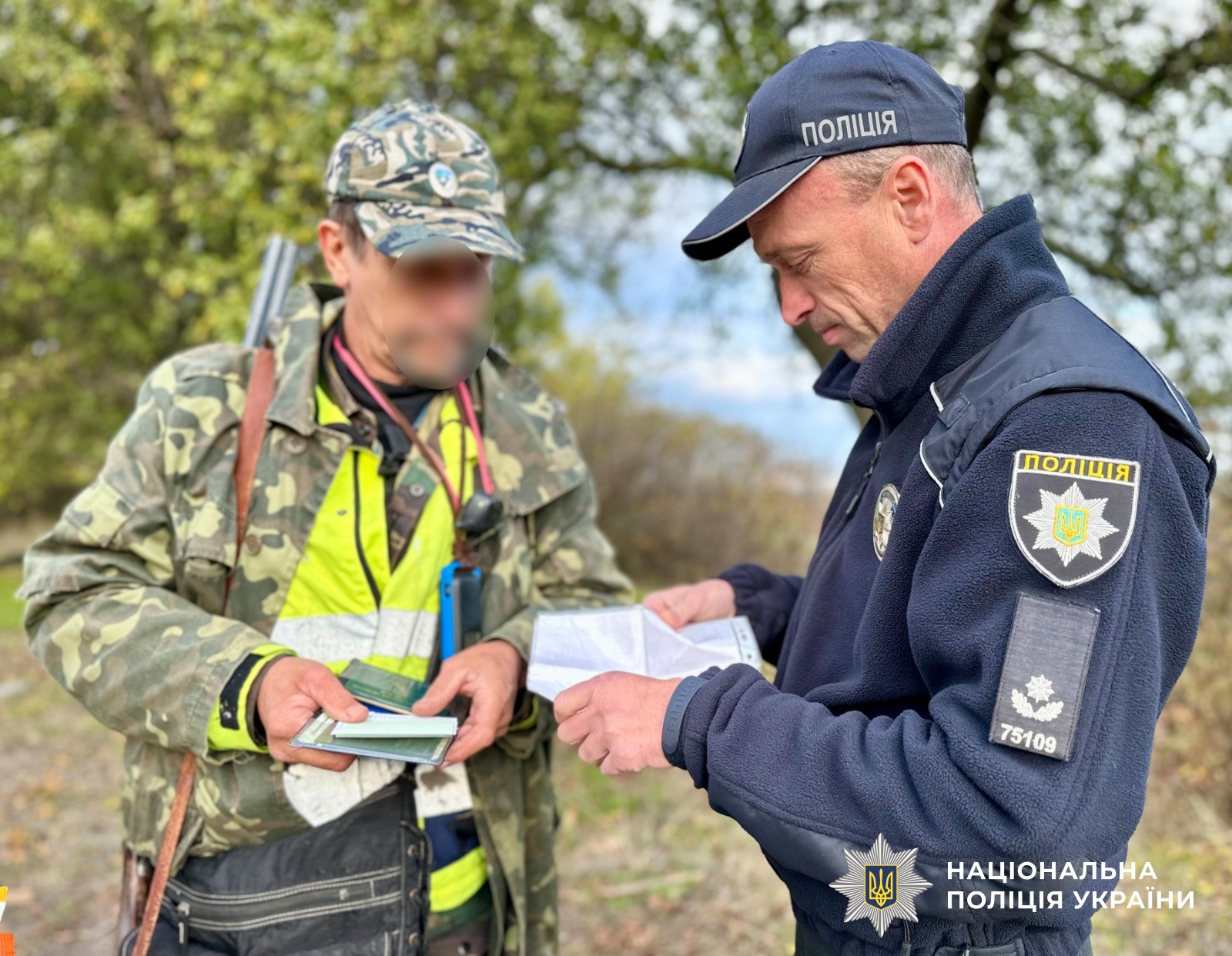 Спілкуючись із мисливцями, поліцейський перевірив наявність посвідчення мисливця, контрольної картки обліку добутої дичини, відстрілочної картки та дозволу на право носіння і зберігання мисливської зброї. Нагадав про діючі обмеження під час полювання та заборонену полювати ближче ніж за 200 метрів від житлових будівель, у темний період доби (через годину після заходу сонця і за годину до його сходу), в стані алкогольного сп'яніння. Застеріг, що не дозволяється використовувати штучні джерела світла, прилади нічного бачення, дзеркала для осліплення тварин, вибухові речовини, а також петлі, гачки, самостріли, ловчі ями. Наголосив, що за порушення правил полювання передбачена як адміністративна, так і кримінальна відповідальність.