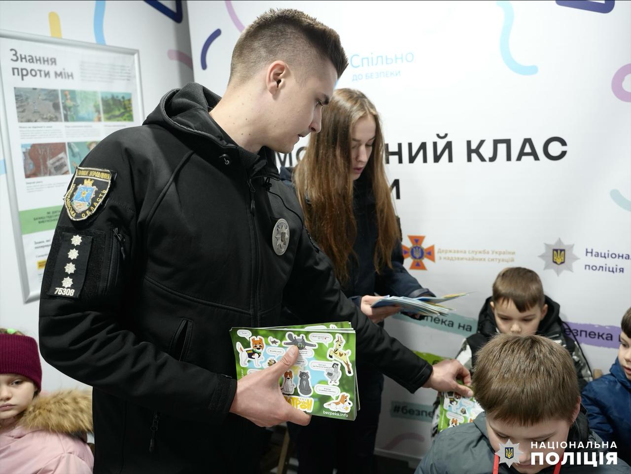 Безпечне середовище починається зі знань: поліцейські та рятувальники провели урок з мінної безпеки у мобільному класі