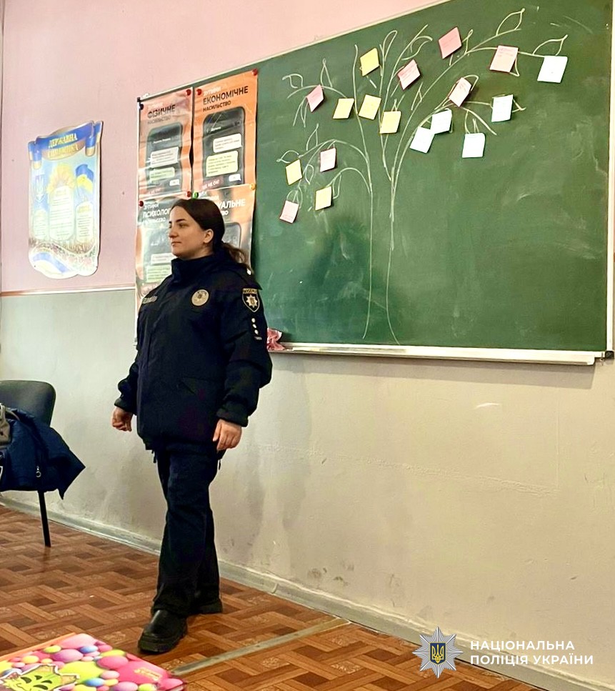 На завершення поліцейська закликала дітей бути доброзичливими та толерантними при спілкуванні з рідними та оточуючими, підтримувати один одного, поважати погляди та вподобання інших, прислухатись до порад дорослих. Не мовчати про випадки насильства стосовно себе, не відвертатися від тих, кому потрібна допомога.