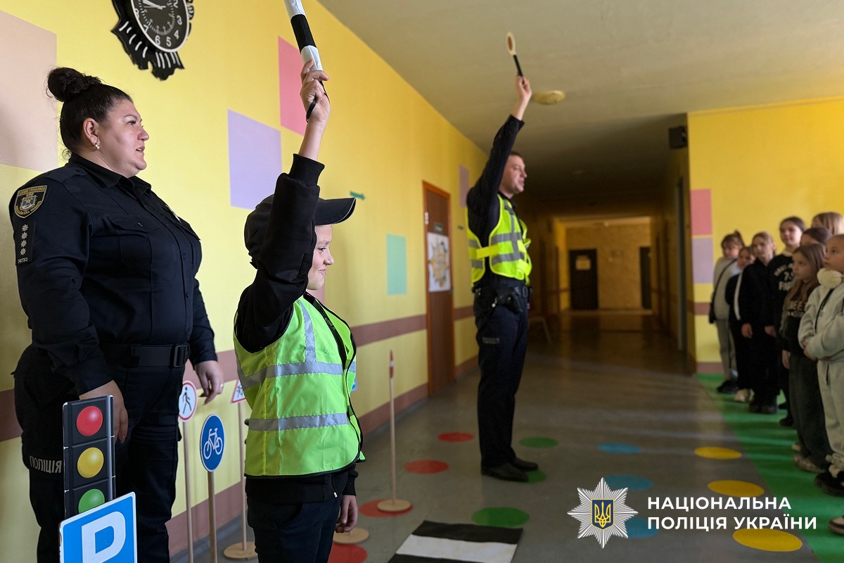 Правоохоронці навчали розпізнавати вимоги дорожніх знаків, сигнали регулювальника та пояснили важливість дотримання правил безпеки на дорозі, зокрема, під час переходу пішохідних переходів і в темний час доби.