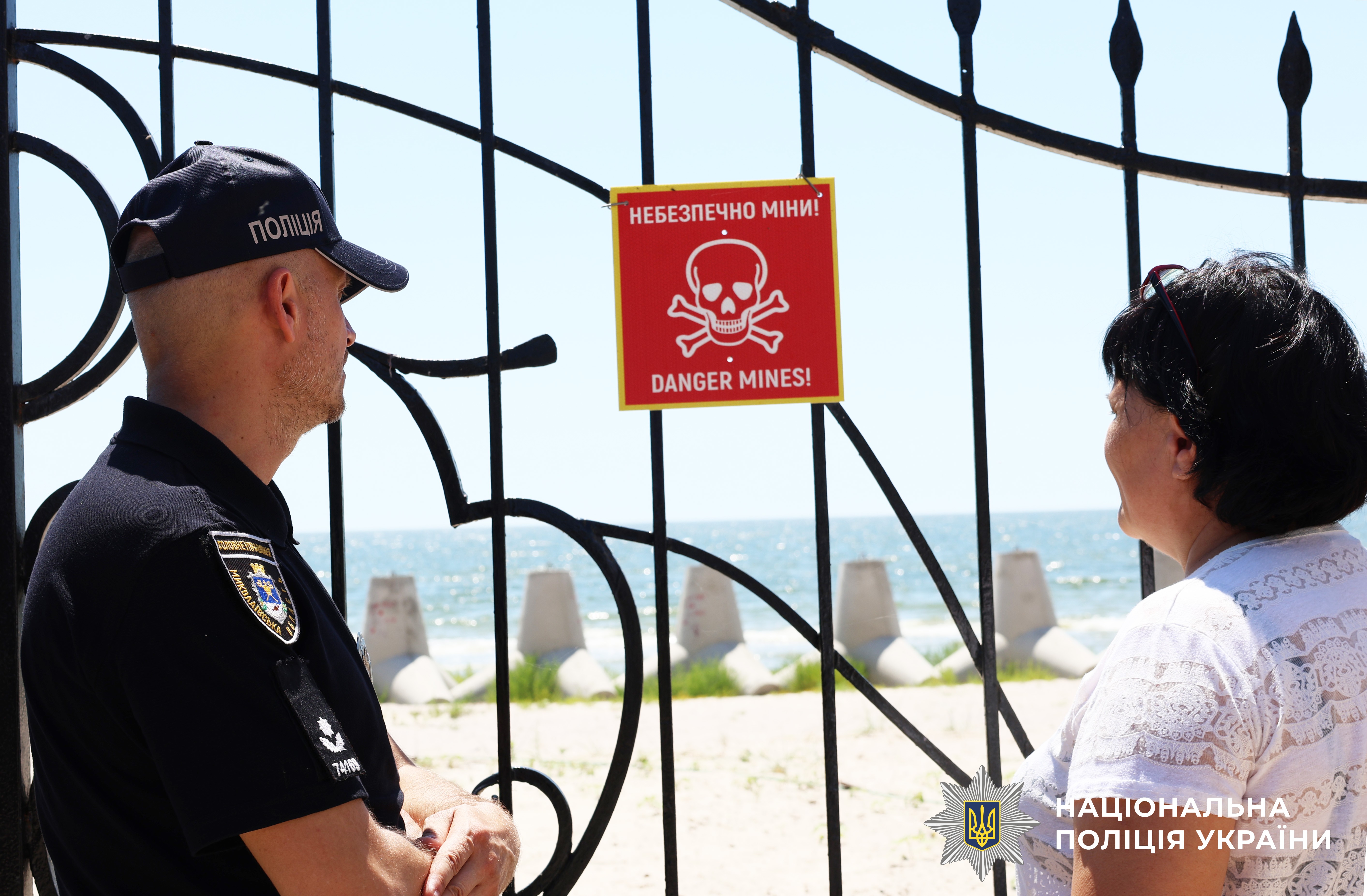 З метою збереження життя та здоров’я громадян поліцейські Миколаївщини проводять превентивні заходи на Чорноморському узбережжі. Правоохоронці, спілкуючись з відпочивальниками та адміністраторами закладів, закликали не порушувати правила заборони виходу на пляжі та купання у морі у зв’язку з можливими небезпеками вибухонебезпечних предметів.