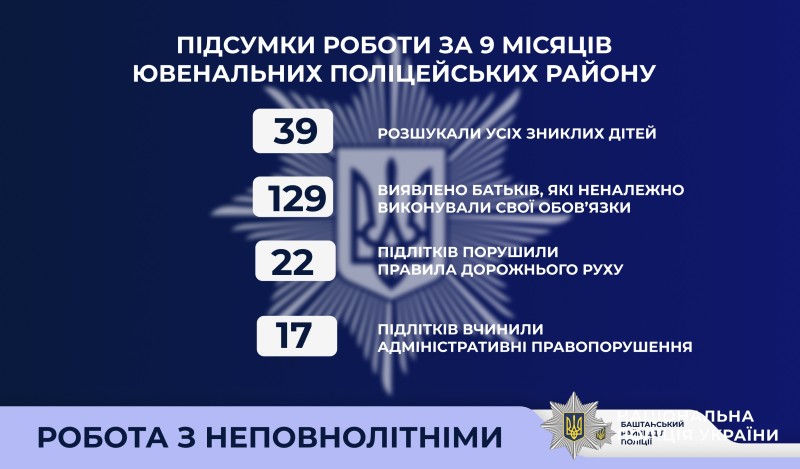 Безпека дітей та контроль правопорушень: підбили підсумки 9 місяців роботи з неповнолітніми поліцейські Баштанського району
