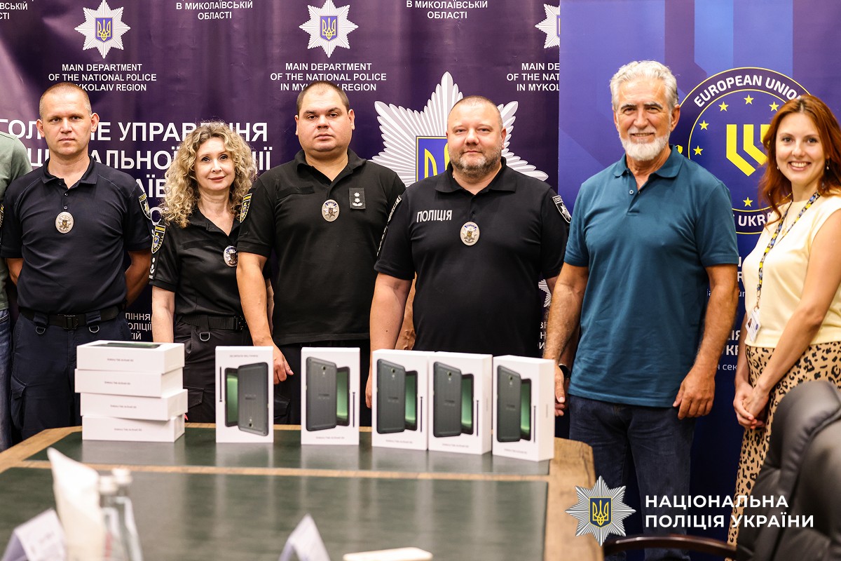 Представники Консультативної місії Європейського Союзу передали поліцейським офіцерам громад Миколаївщини портативні комп'ютери. Технічні пристрої дозволять кожному правоохоронцю в будь-якому куточку регіону мати онлайн доступ до спеціалізованих систем та вчасно реагувати на повідомлення громадян.