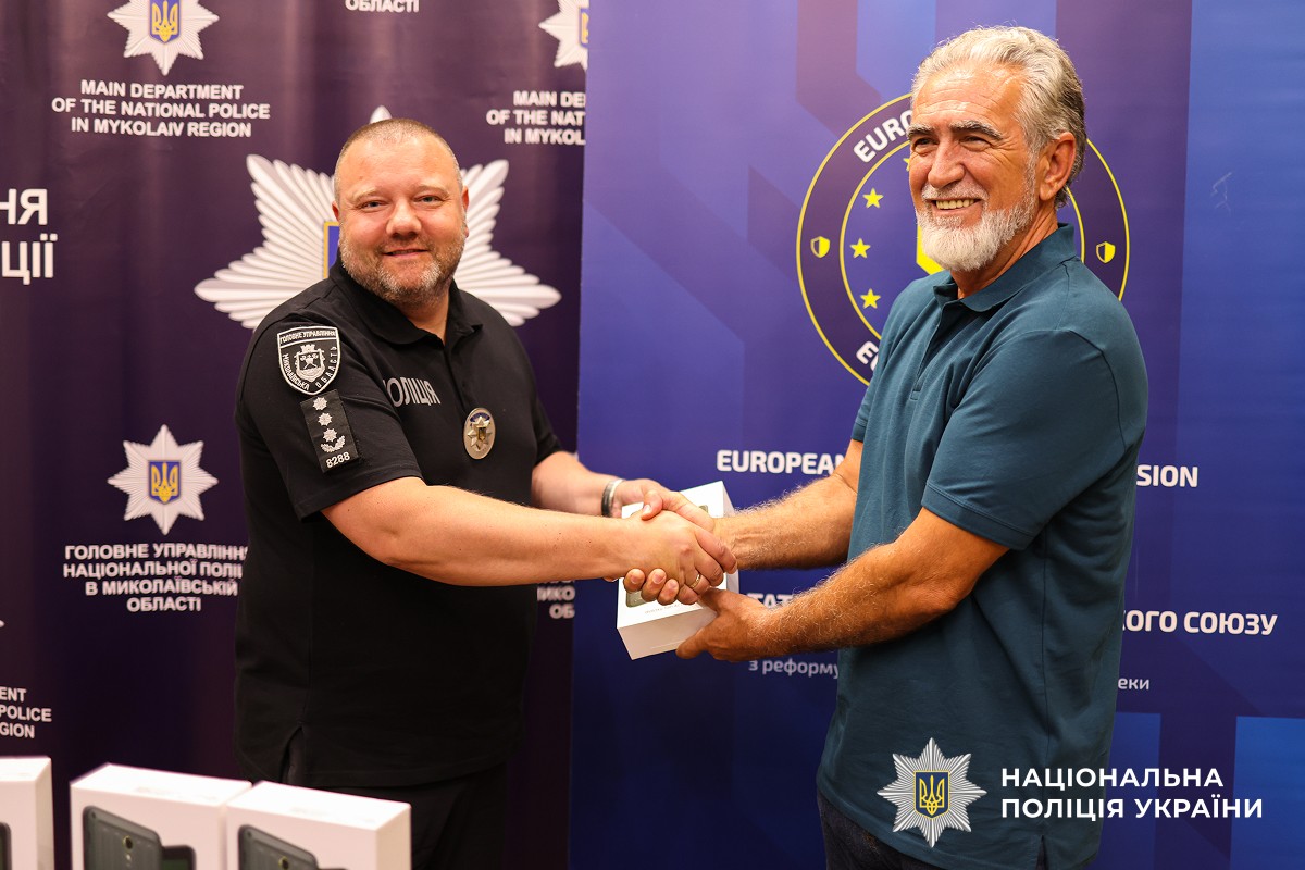 Георгіос Покас зазначив, що передача портативних комп'ютерів неабияк допоможе правоохоронцям забезпечувати правопорядок у громадах області. Своєю чергою, Олексій Попков подякував представникам Консультативної місії Європейського Союзу в Україні за надану допомогу. Він зазначив, що сьогодні у сфері громадської безпеки функціонує проєкт «Поліцейський офіцер громади», що базується на партнерстві між поліцією та громадянами.