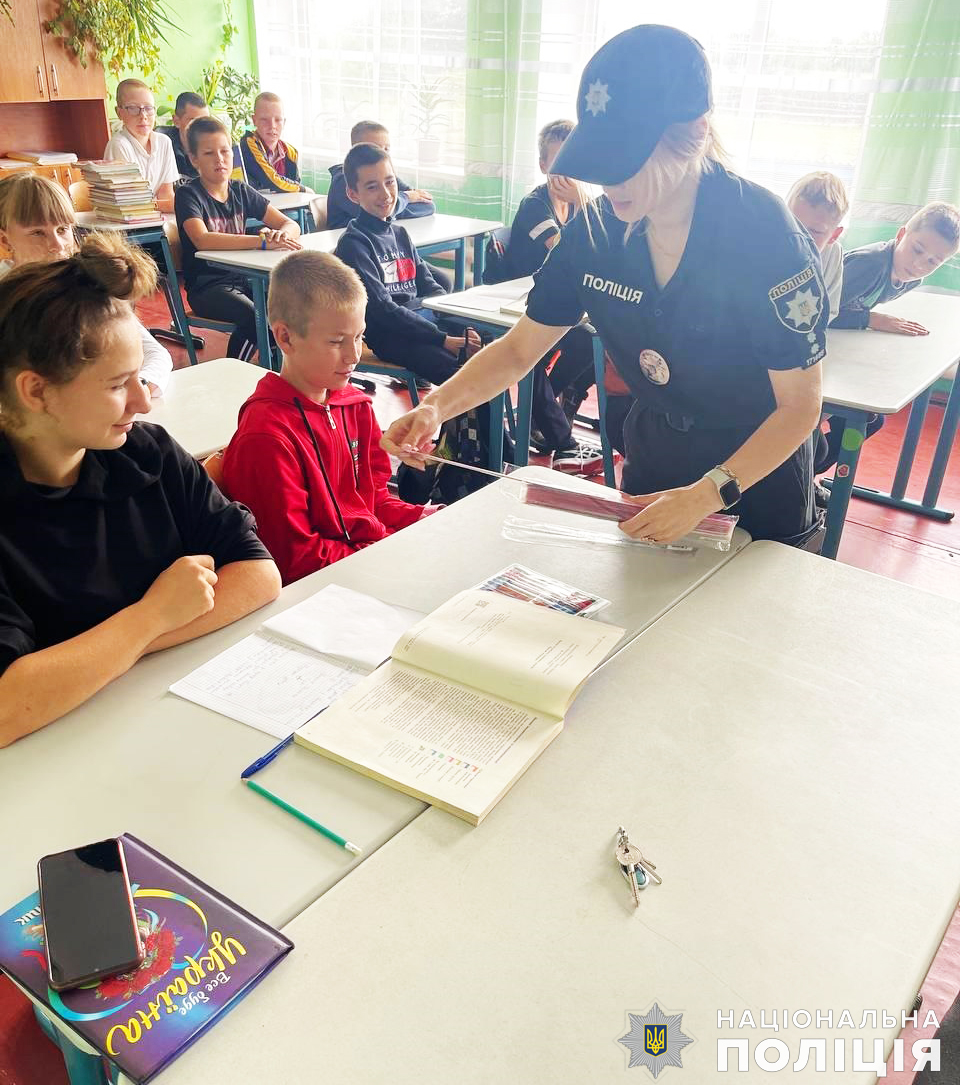 Сьогодні, 4 вересня, поліцейський офіцер Кривоозерської територіальної громади Зінаїда Корницька відвідала учнів 5-го та 8-го класів Очеретнянської гімназії місцевої селищної ради.