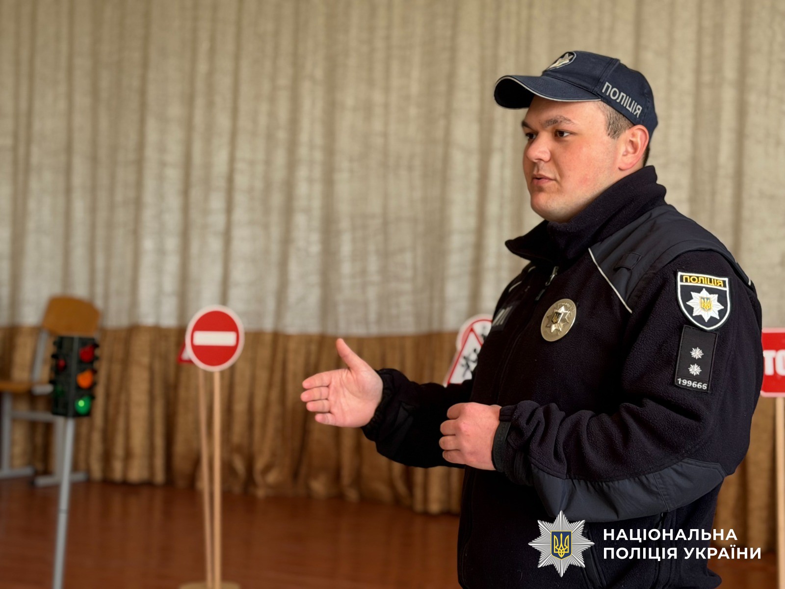Правоохоронці нагадали учням правила дорожнього руху та наголосили на важливості бути помітними на дорозі у темну пору доби, використовуючи світловідбиваючі елементи.