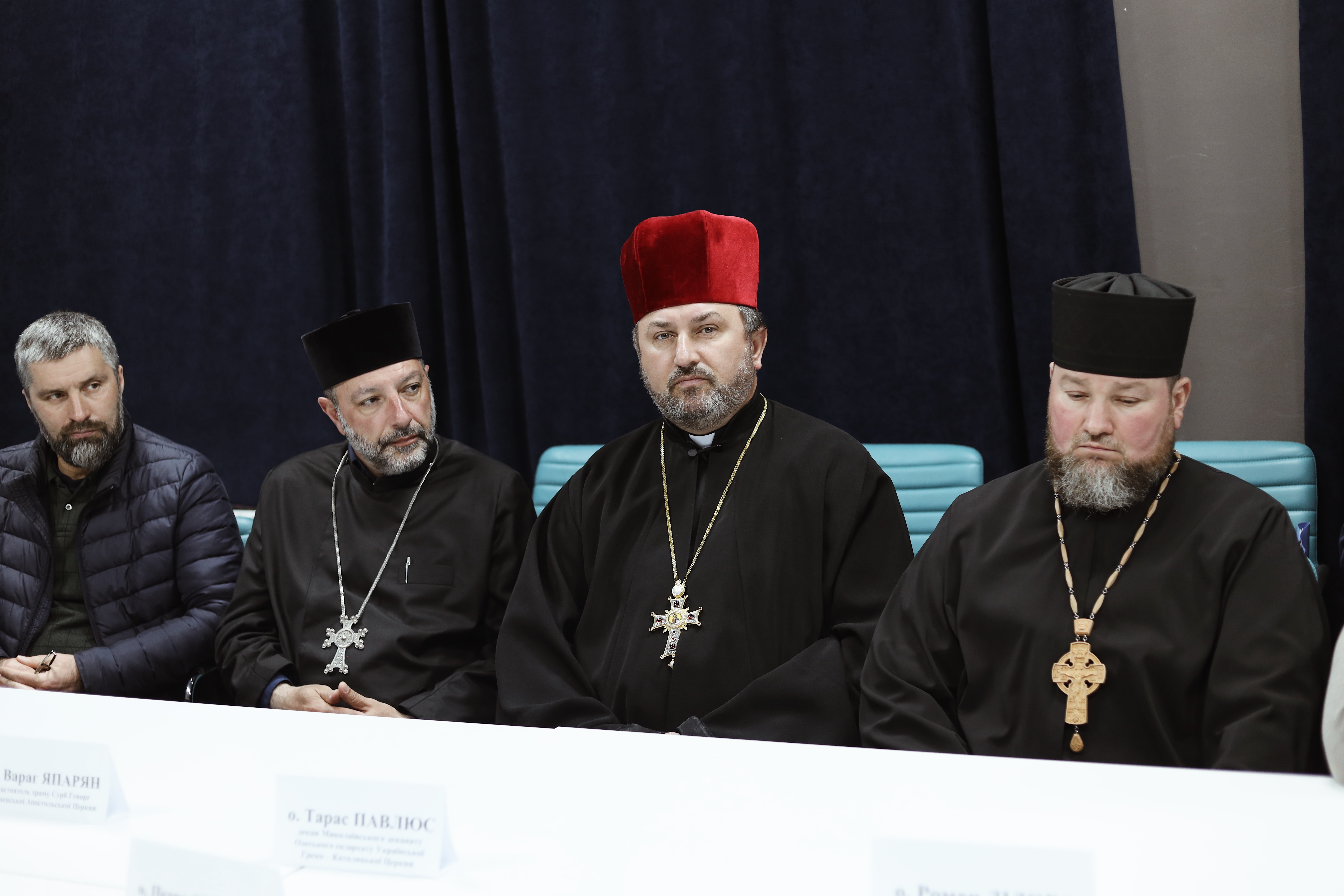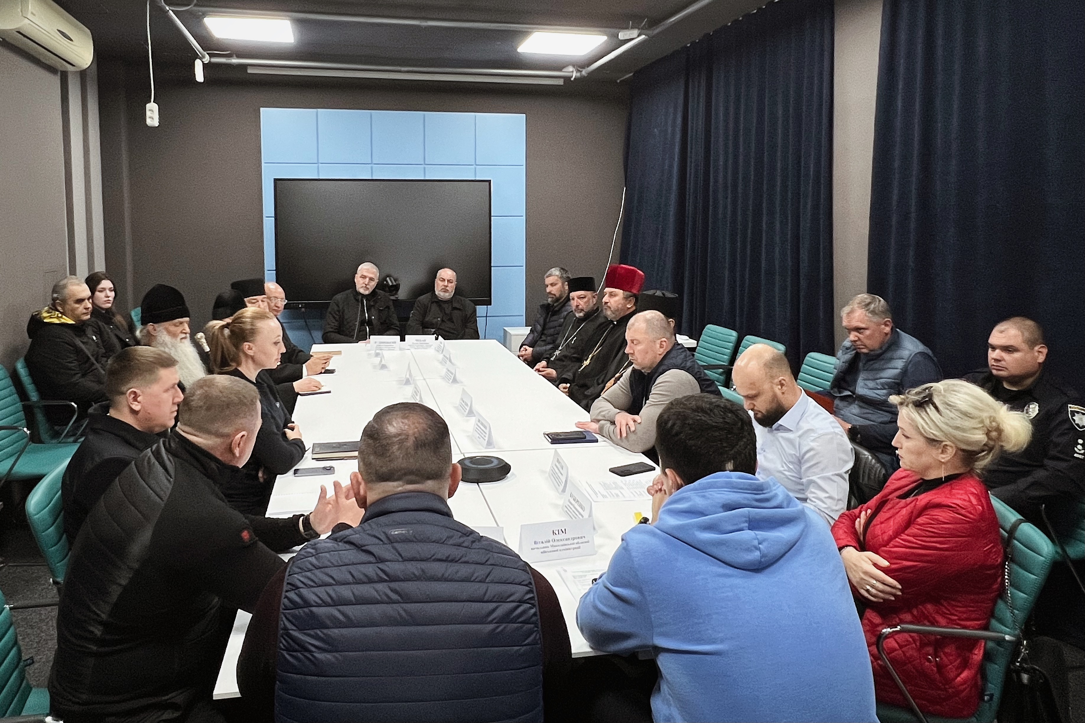 Зустріч провів керівник Миколаївської обласної військової адміністрації Віталій Кім за участі представників всіх конфесій області, керівництва Служби безпеки України, Національної поліції, патрульної поліції, ДСНС та інших.