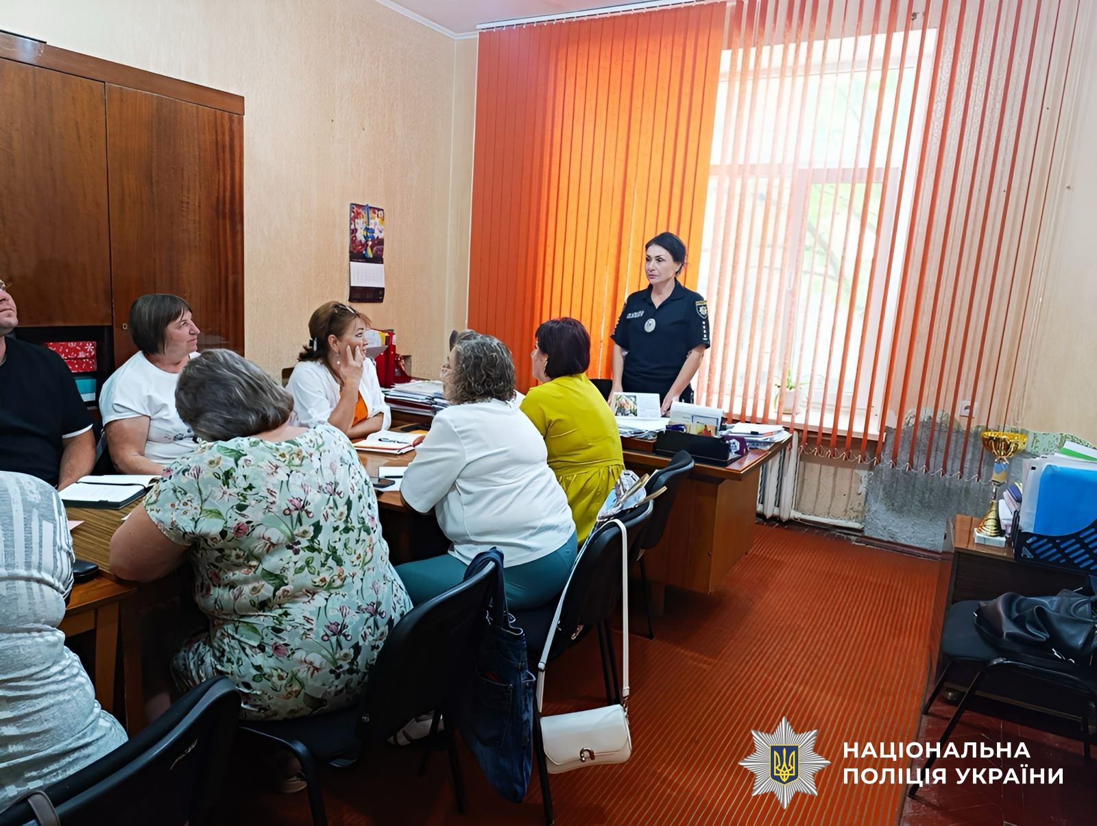 Під час зустрічі поліцейська обговорила з освітянами питання створення безпечного освітнього середовища, дотримання прав дітей, а також порядок реагування на випадки булінгу в учнівському середовищі.