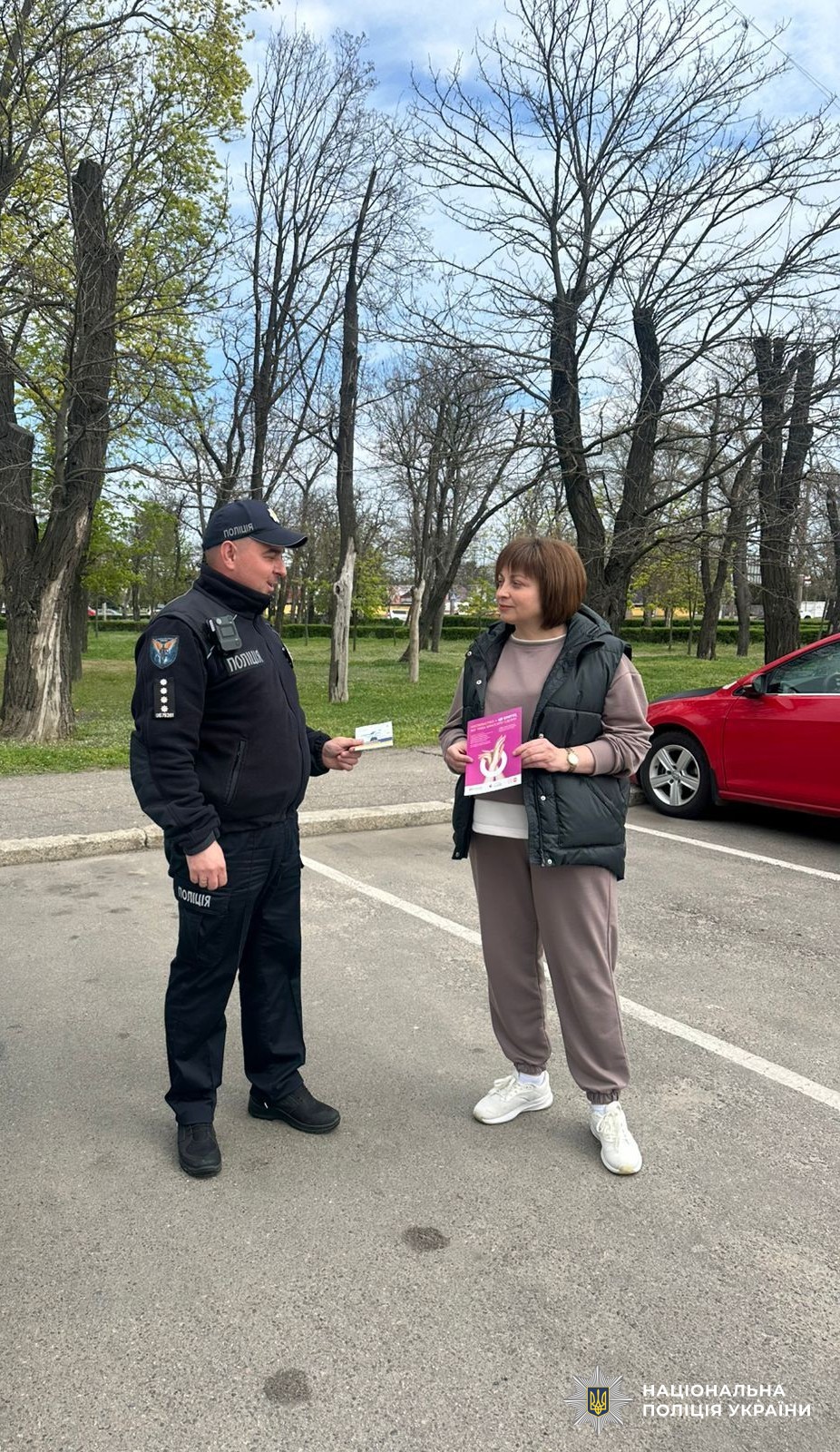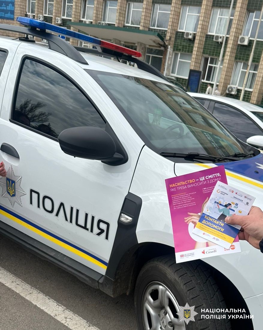 Також правоохоронець роздав інформаційні листівки з корисними контактами, покроковою інструкцією щодо захисту від дій кривдників та закликав громаду бути небайдужими і допомагати тим, хто опинився у скрутному становищі.