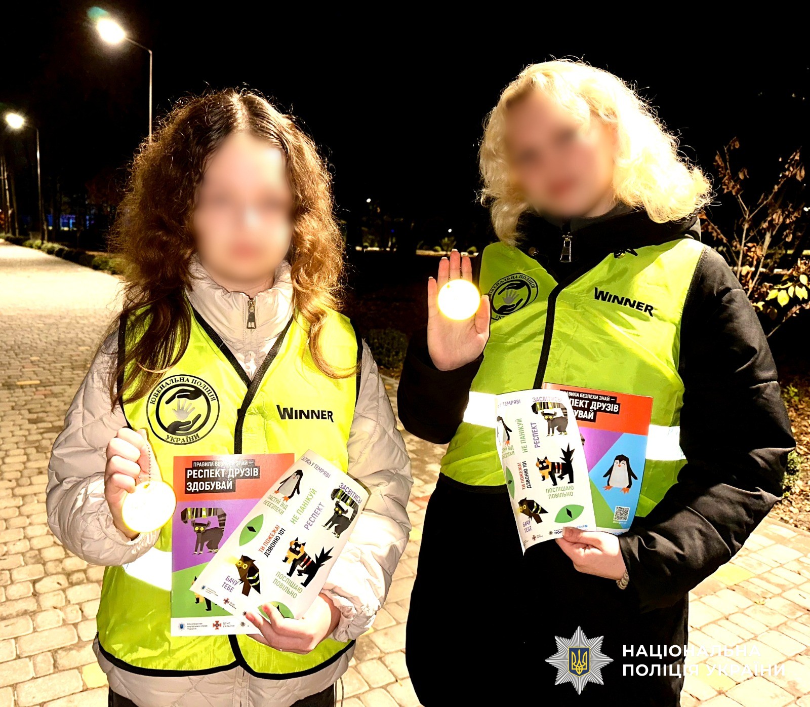 Під час спілкування із дітьми та їхніми батьками поліцейські пояснювали важливість використовувати на одязі та речах світловідбиваючі елементи. Це дає можливість водіям вчасно помітити пішоходів та зменшити швидкість руху.