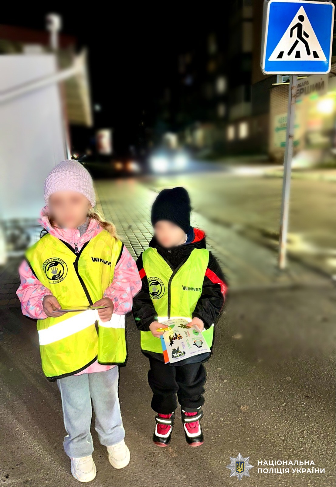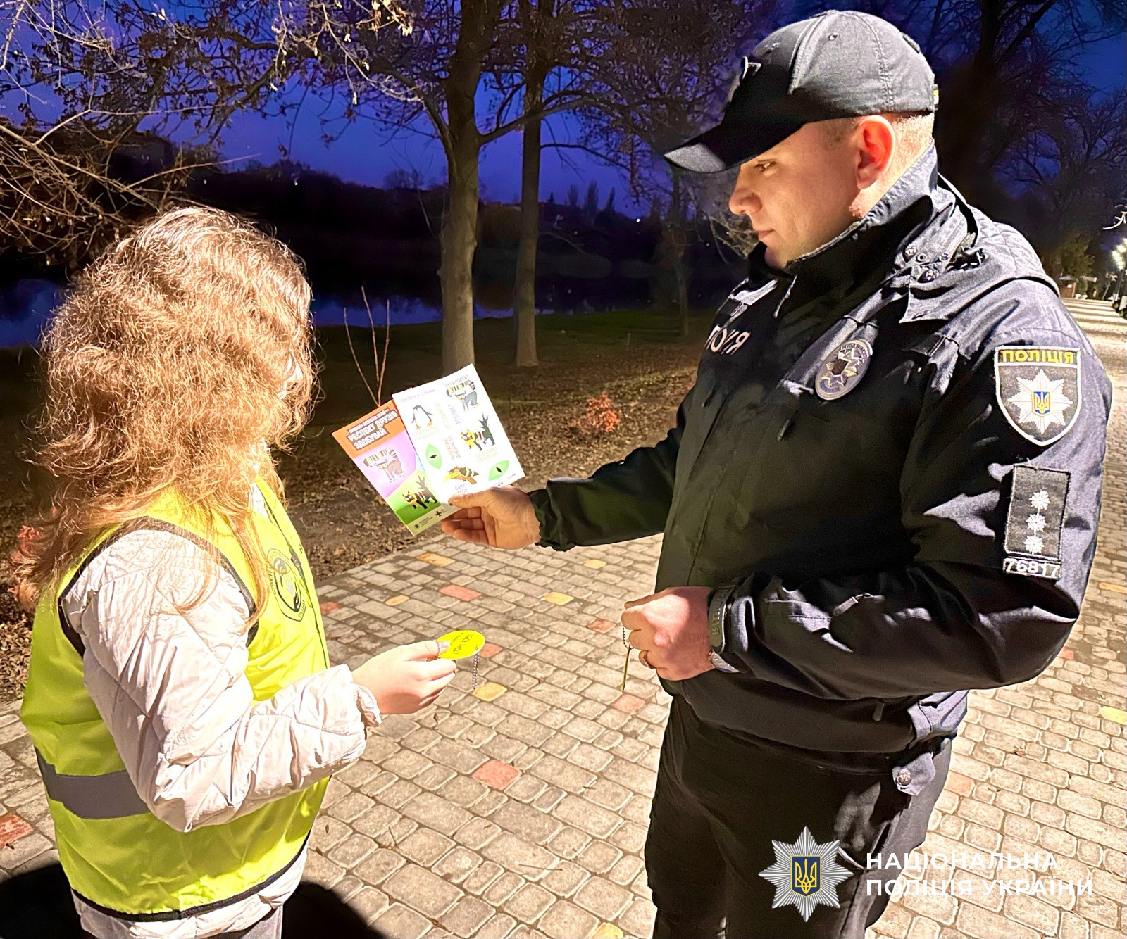 Будь помітним на дорозі: у Первомайську поліцейські закликали дітей дбати про власну безпеку в темний час доби