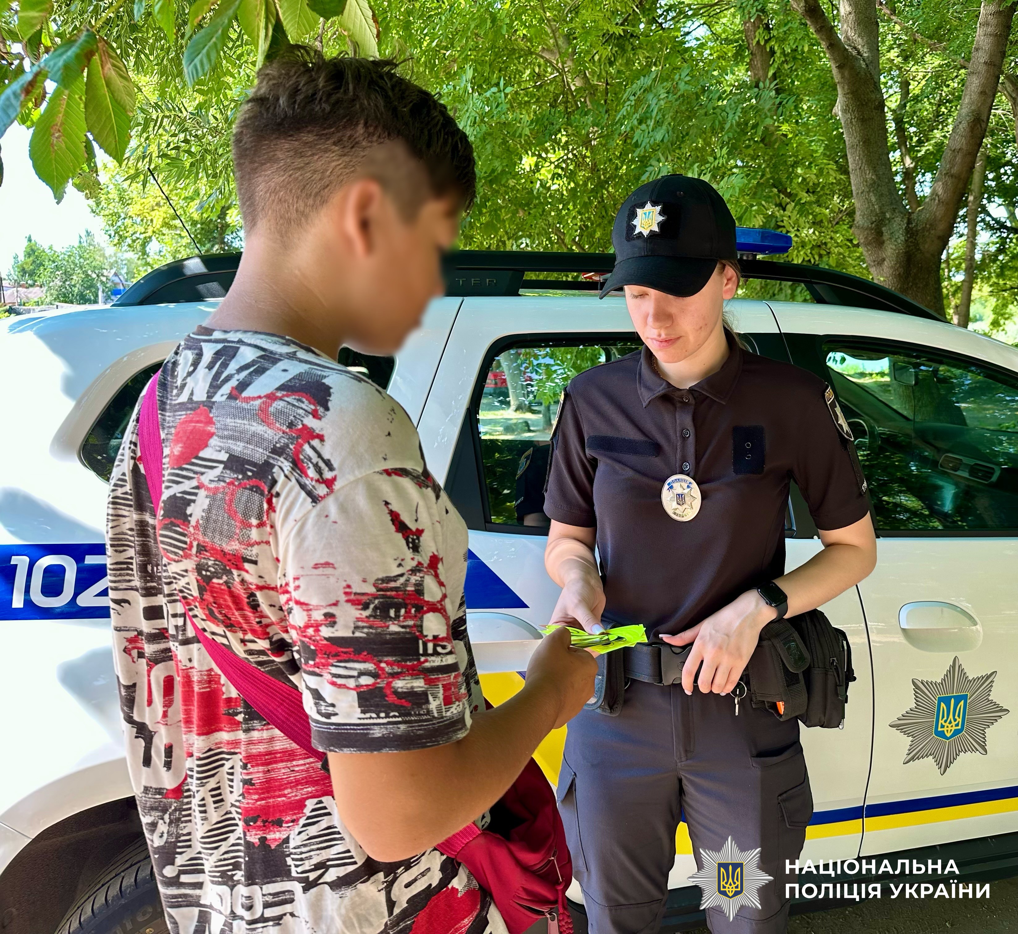 Будь уважним – дивись, слухай, дотримуйся: у Первомайську поліцейські нагадали дітям основи безпечної поведінки на дорозі