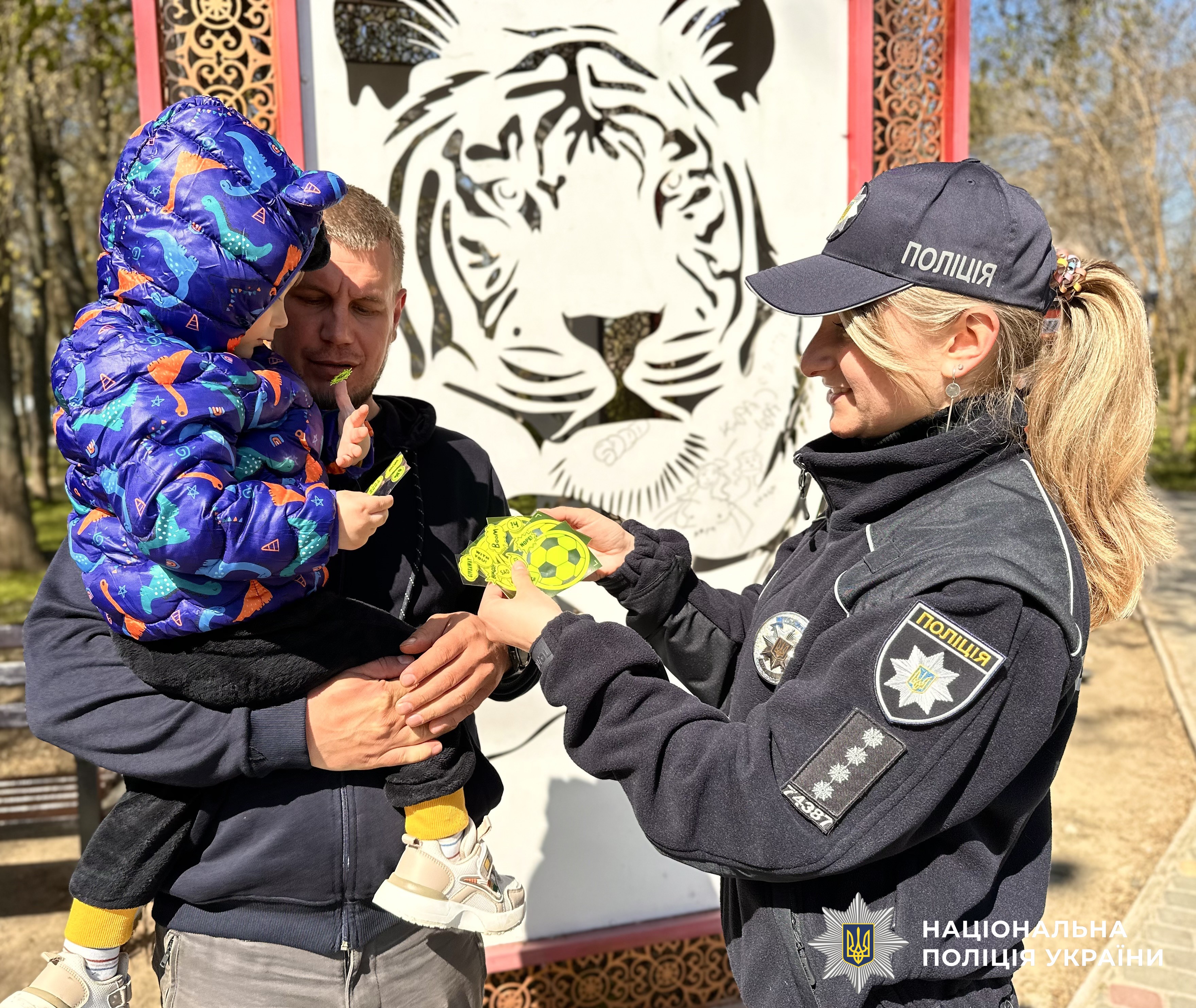 Спілкуючись із дітьми та їхніми батьками, поліцейська нагадала, що дотримання правил дорожнього руху, особливо в темряві, це, передусім, запорука збереження їхнього здоров’я та життя. Такі прості речі, як використання світловідбивальних елементів, перехід дороги «зеброю» чи на світлофорі, заборона ігор на проїжджій частині, мають головне призначення — бережуть від травм та летальних наслідків.