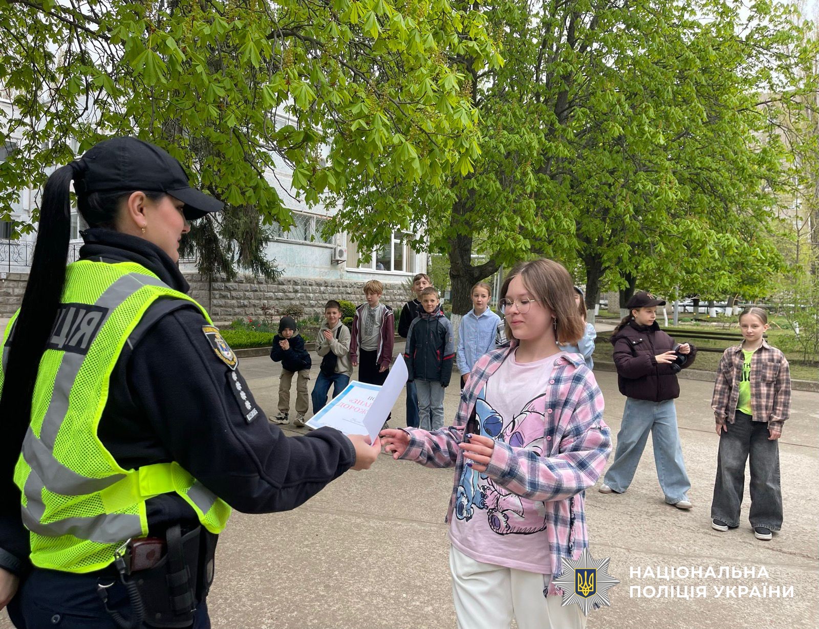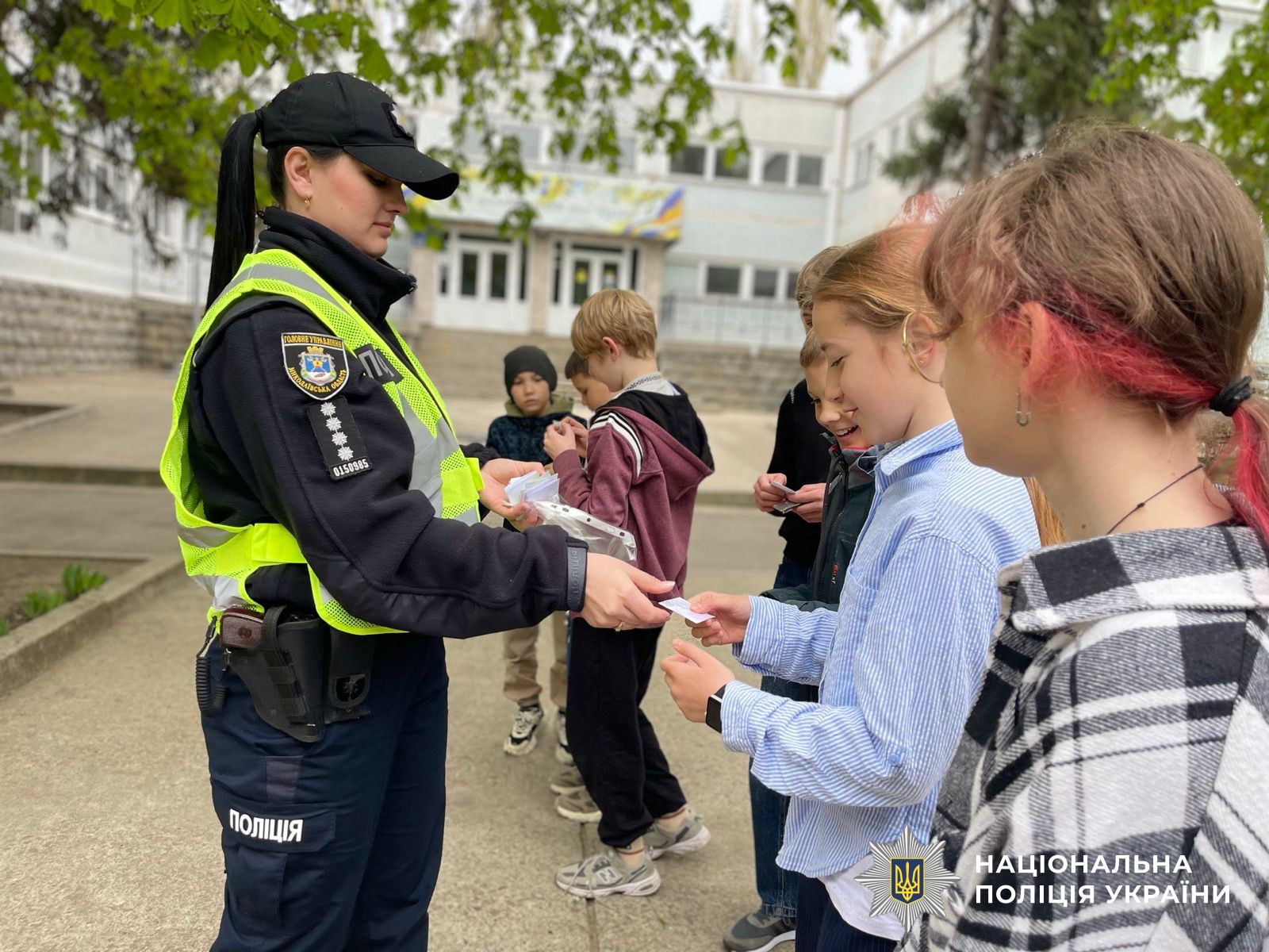 Бути уважним на дорозі: у Вознесенську поліцейська служби освітньої безпеки навчали дітей правил дорожнього руху