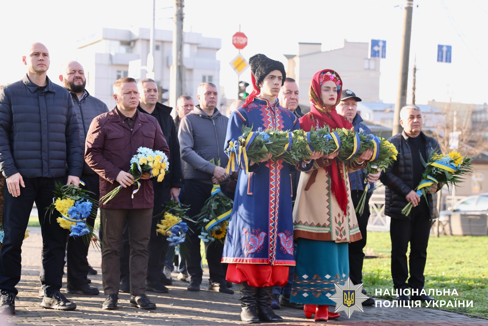 Керівник Головного управління Національної поліції в Миколаївській області Сергій Махно разом із представниками місцевої влади та жителями міста вшанували пам’ять загиблих хвилиною мовчання та покладанням квітів, висловивши вдячність кожному, хто пожертвував собою заради України, відстоював її незалежність та передавав ідею свободи наступним поколінням українців.