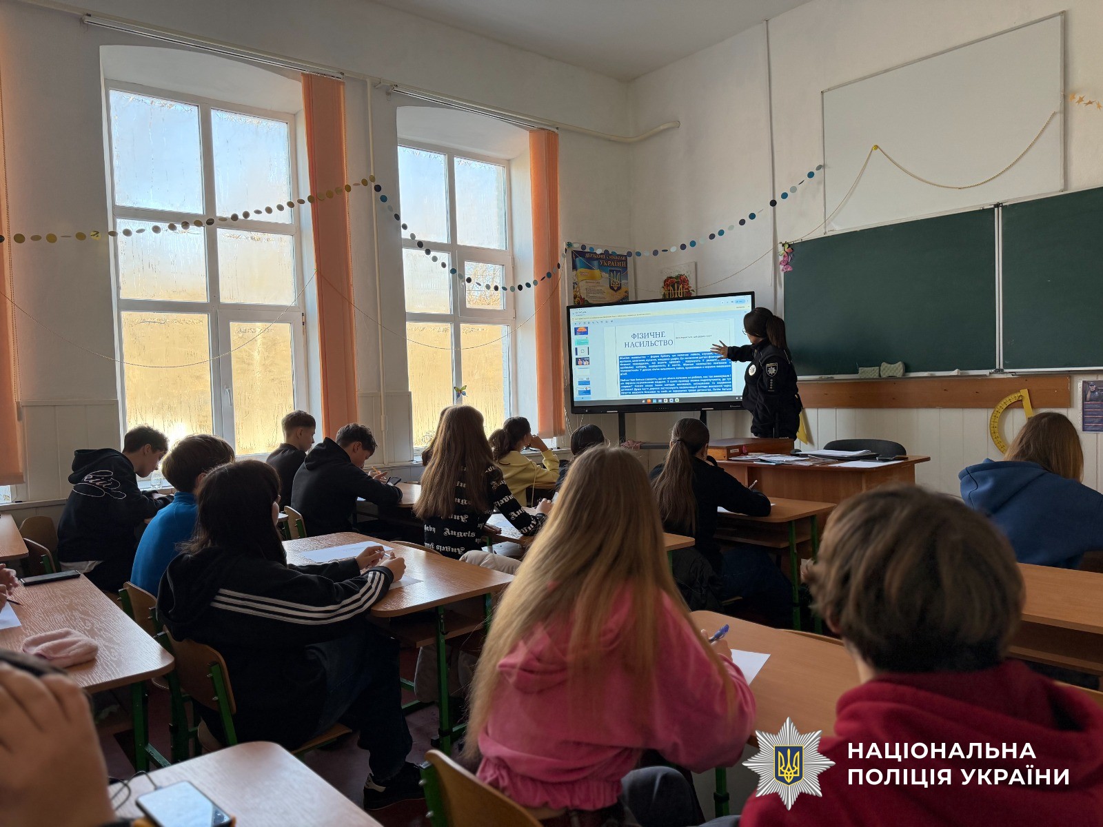 Також офіцери роз’яснили особливості адміністративної та кримінальної відповідальності неповнолітніх, зокрема за вчинення булінгу, кібербулінгу та інших правопорушень. Також нагадали дітям про їхні права і обов’язки, визначені чинним законодавством.