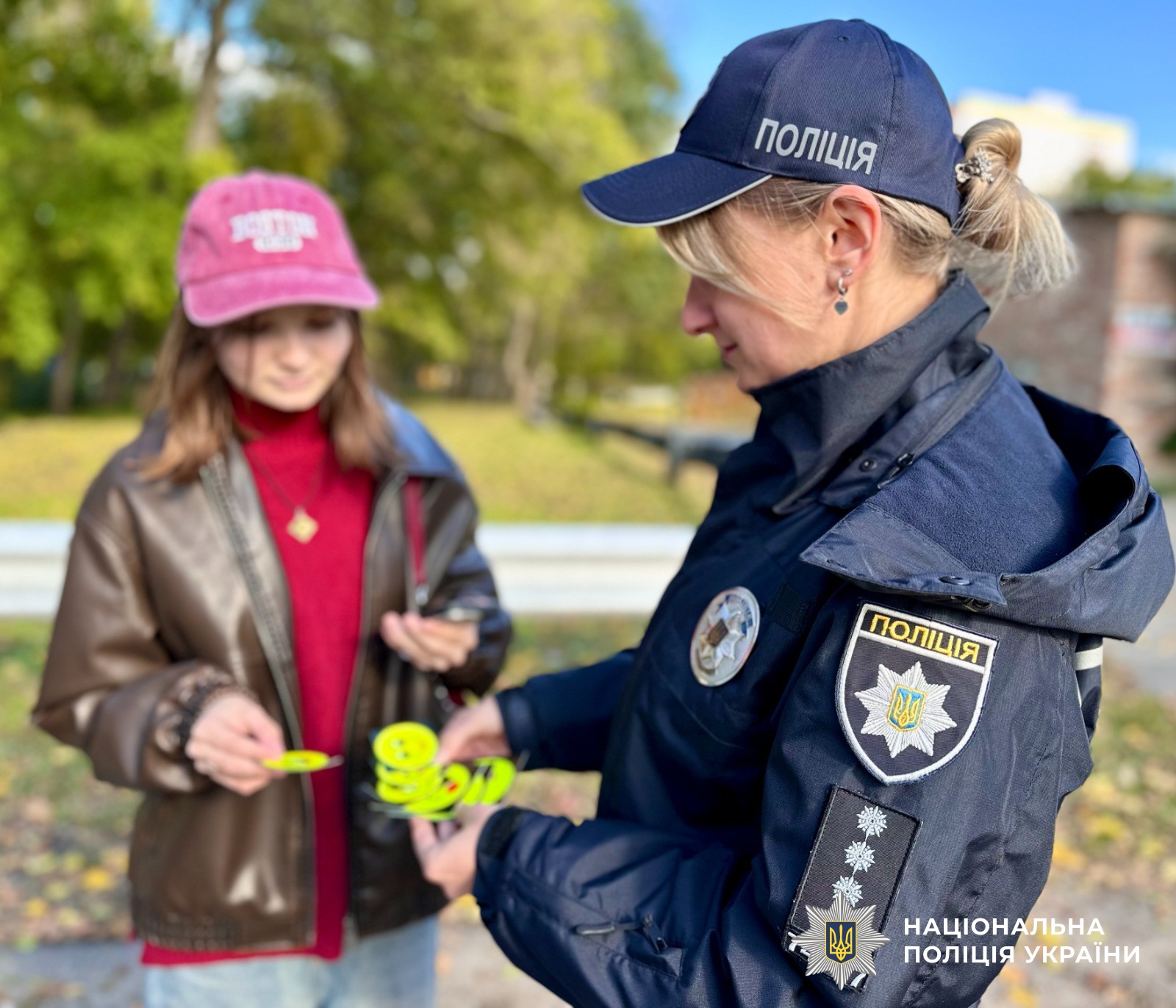 Спілкуючись із юними пішоходами та їхніми батьками, поліцейська нагадала про важливість дотримання основних правил дорожнього руху, де і як переходити дорогу, як безпечно поводитись на проїжджій частині. Також розповіла про необхідність носіння у темну пору доби на верхньому одязі чи речах світловідбиваючих елементів, які зроблять пішоходів помітними для водіїв транспортних засобів і вбережуть від травмувань та загибелі.