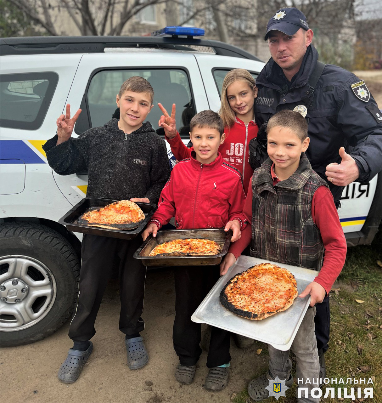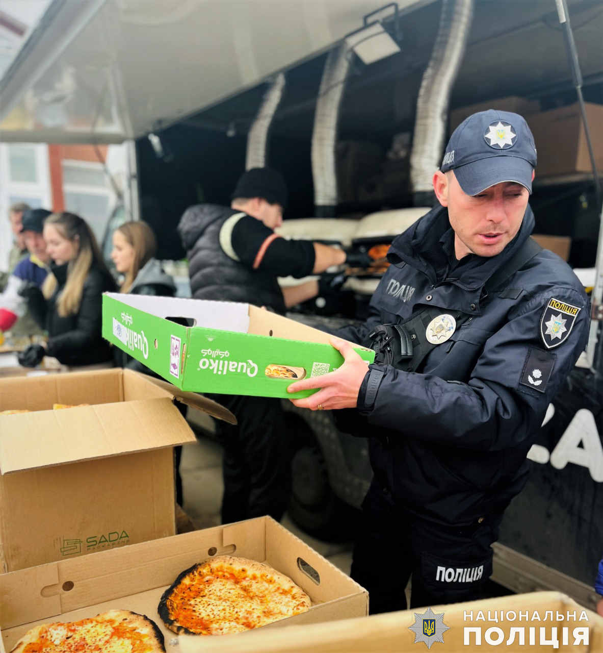 Для мешканців шести громад Миколаївщини поліцейські разом із волонтерами влаштували роздачу безкоштовної піци