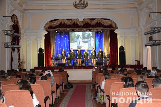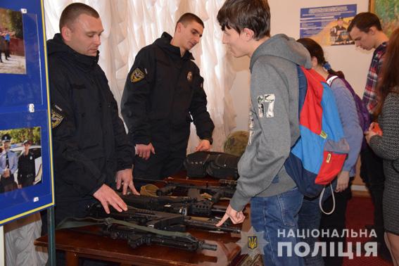Майбутніх випускників ознайомили із специфікою роботи, умовами проходження служби, завданнями, які стоять перед органами поліції, правами та обов’язками поліцейських, а також детально розповіли про умови вступу й особливості навчального процесу у вищих навчальних закладах системи МВС.