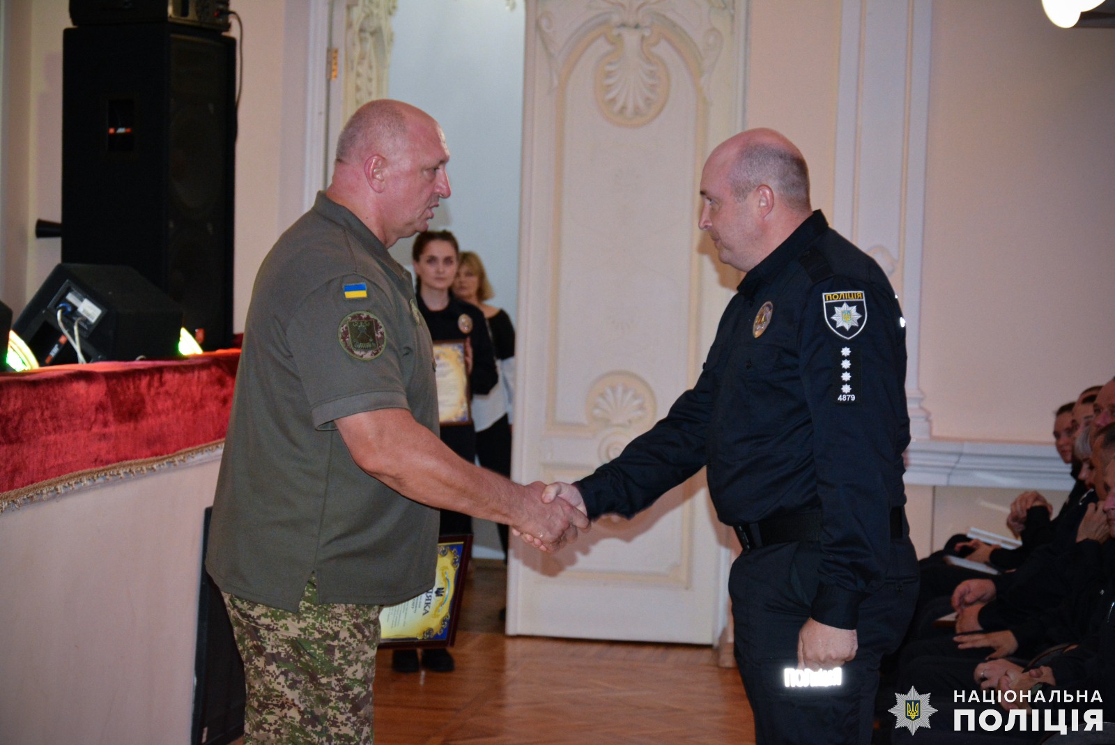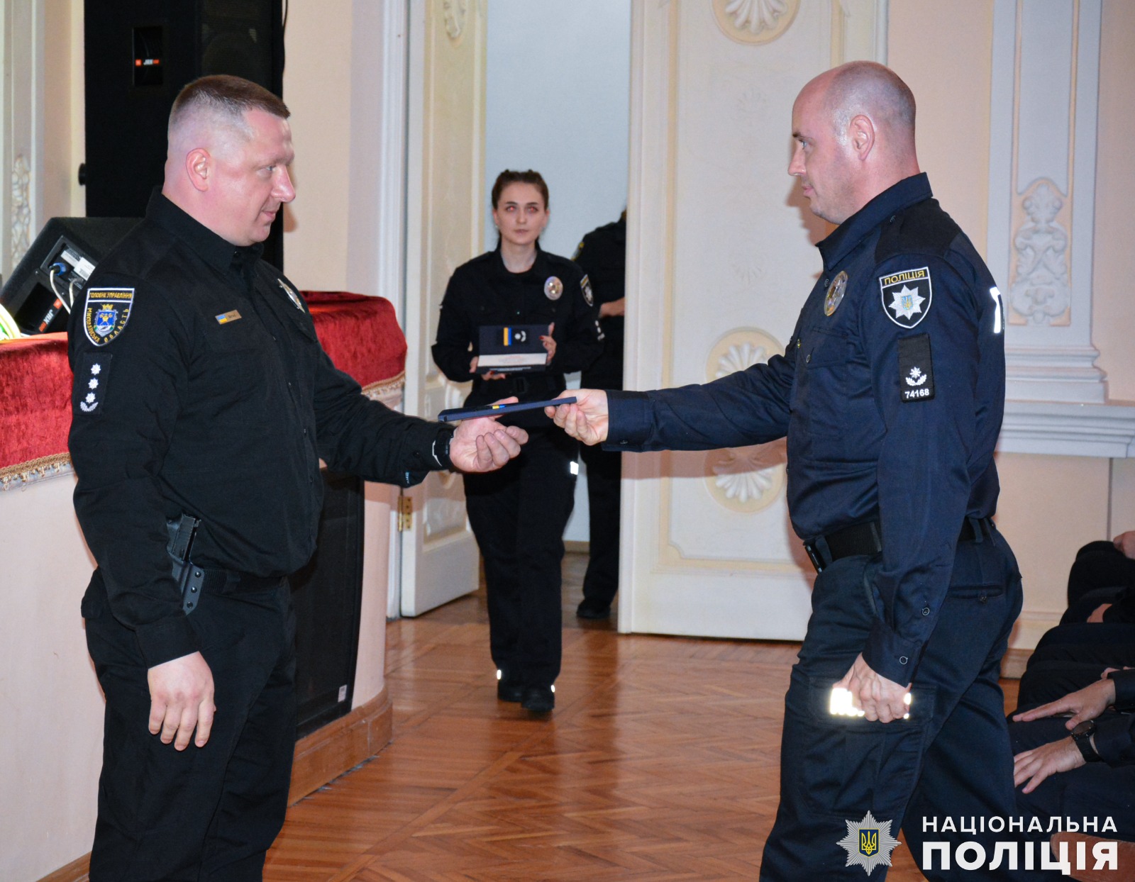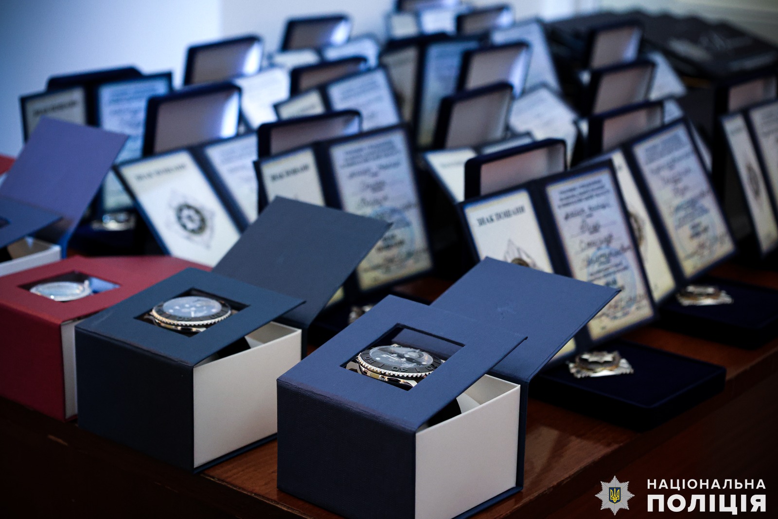 За сумлінне виконання службових обов’язків, значний особистий внесок у справу боротьби зі злочинністю і правопорушеннями та з нагоди відзначення Дня Національної поліції України кращих працівників поліції області нагородили подяками, відомчими відзнаками та вручили наручні годинники і чергові звання.