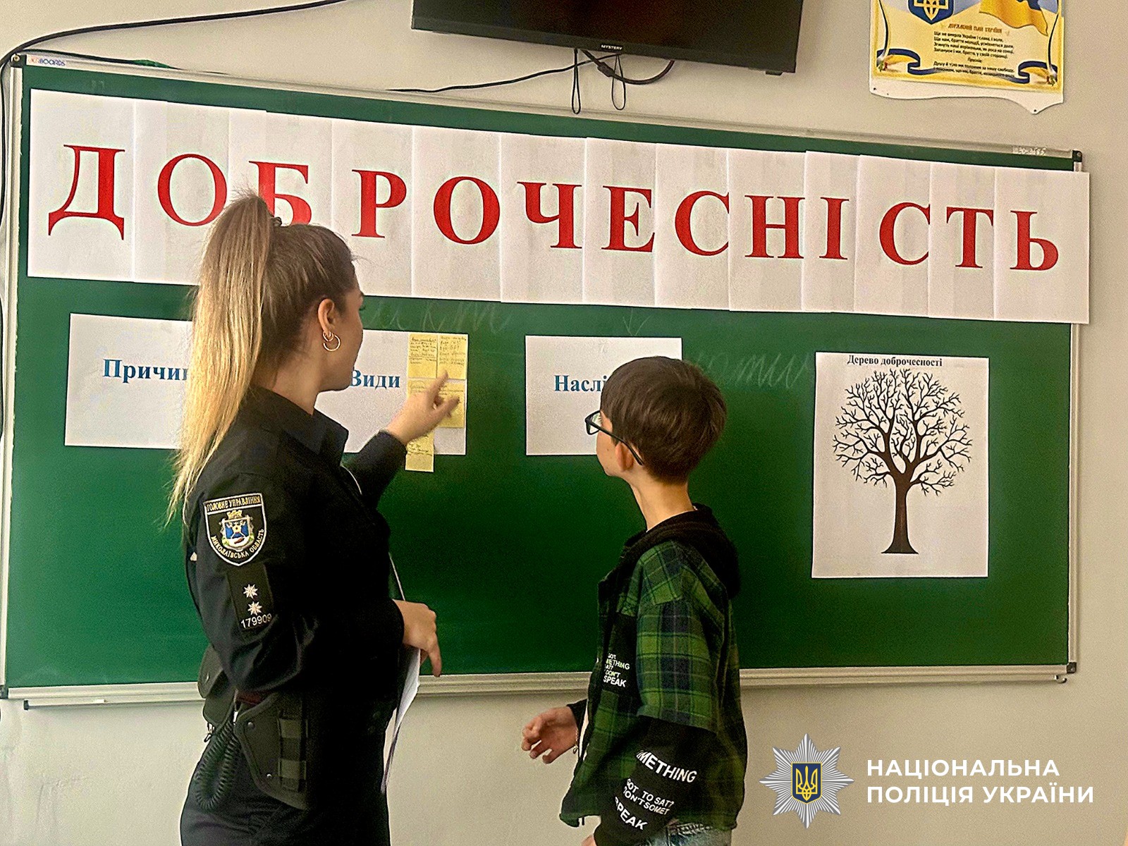 Для учнів 4-6 класів закладів освіти Первомайської та Мигіївської громад офіцерки служби освітньої безпеки Первомайського райвідділу поліції провели заняття, метою яких було сформувати у дітей моральні цінності та чесноти, що стануть важливою складовою їх майбутнього.