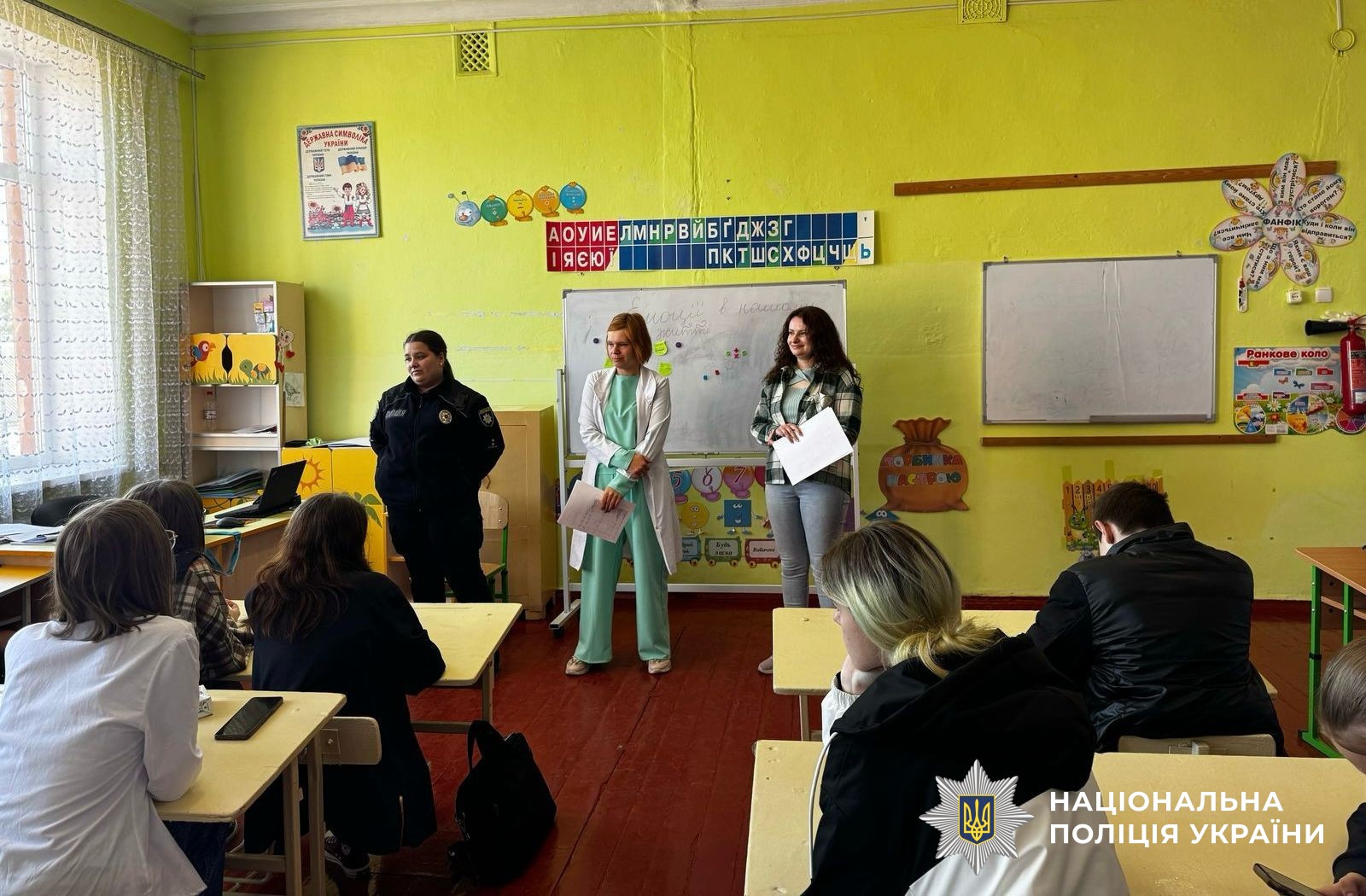 Спеціалізовані заняття для учнів старших класів відбулись у Вознесенській гімназії № 4. Захід організували офіцери служби освітньої безпеки Вознесенського райуправління поліції спільно з освітянами, психологом і медичною сестрою.