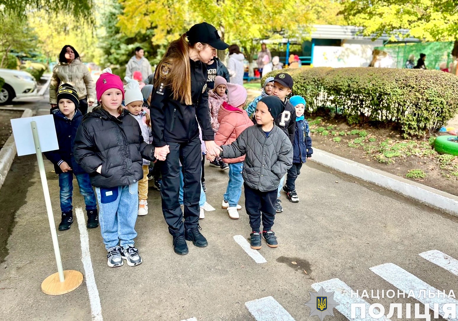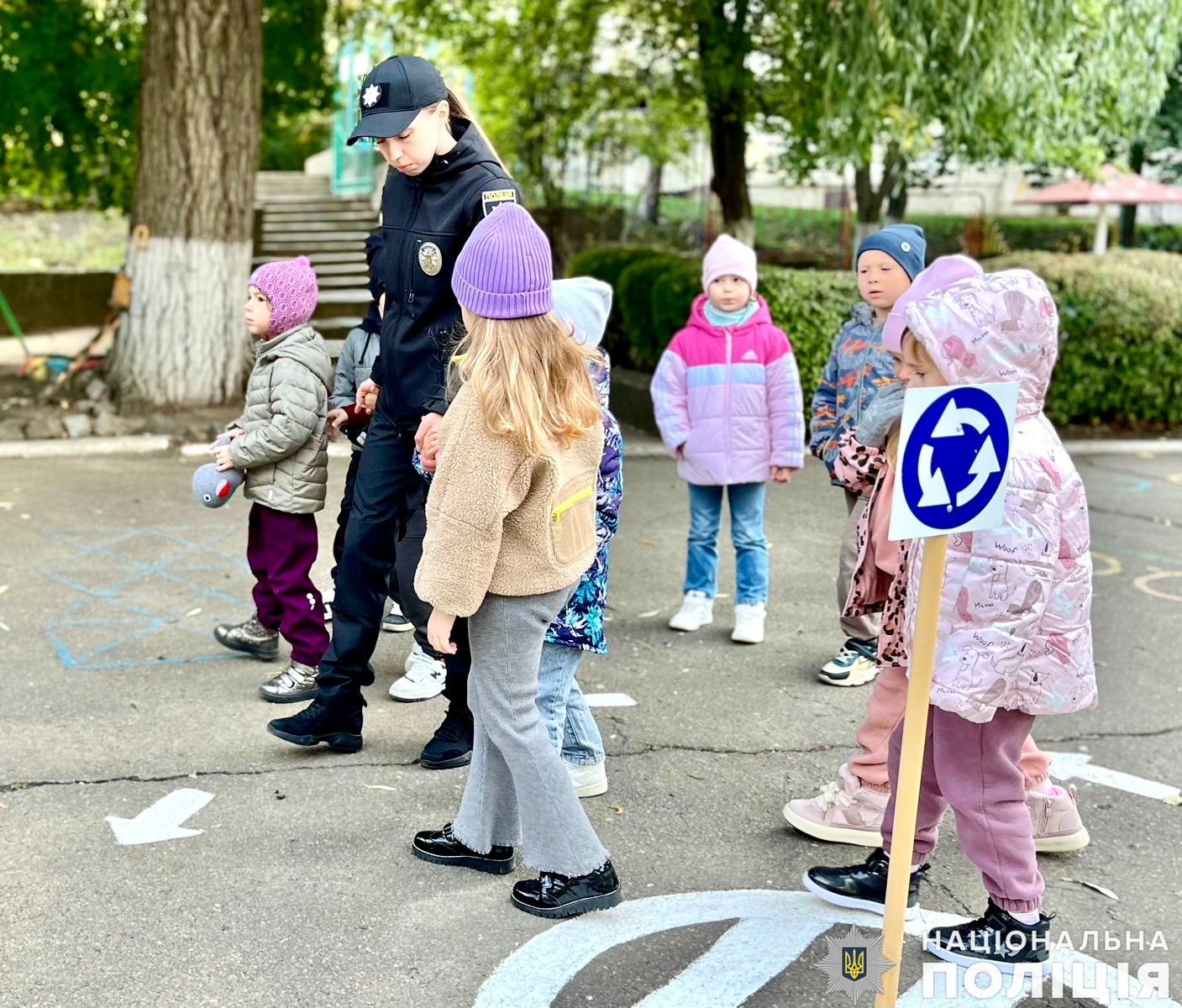 Разом із дітьми поліцейські повторили правила дорожнього руху та які є види дорожніх знаків. Правоохоронці наголосили, що переходити дорогу можна лише по зебрі, по пішохідному переходу та на зелений сигнал світлофора. Рухатися лише по тротуарах, та ні в якому разі не вибігати на дорогу, а впевнитись у відсутності автомобілів і вже потім переходити проїжджу частину дороги. Крім цього, продемонстрували макети дорожніх знаків та розповіли їх значення.