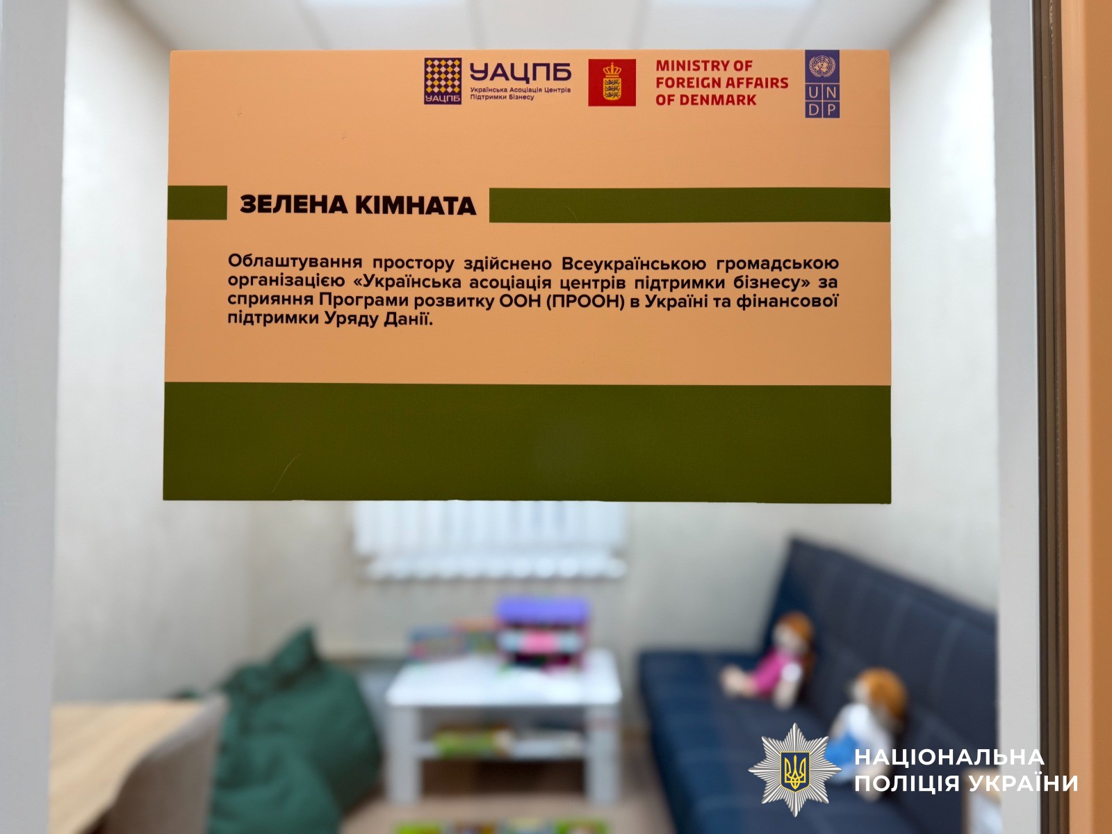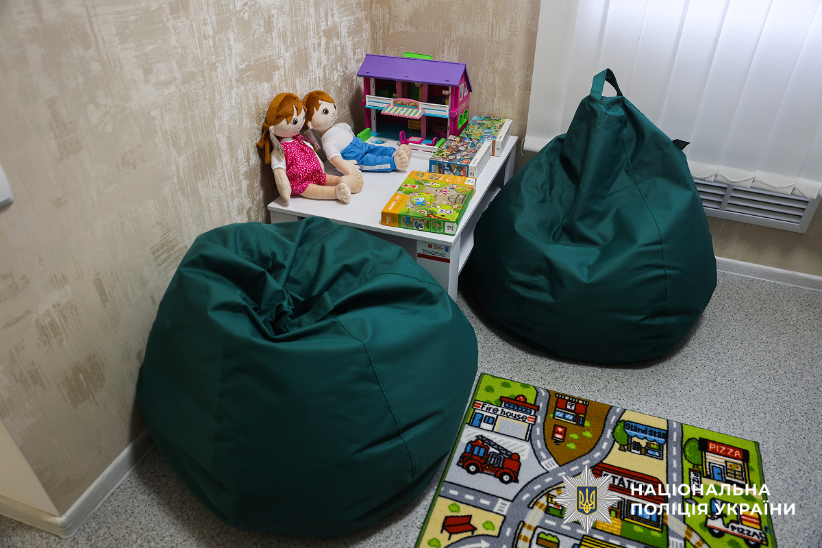 - «Зелена кімната» — це безпечний та дружній простір, у якому правоохоронці й фахівці можуть поспілкуватися з дитиною, не травмуючи її психологічно. Тут усе облаштовано так, щоб малеча почувалася спокійно та довірливо: зручні меблі, ігрові та творчі матеріали допомагають встановити контакт і дати дитині можливість відверто розповісти про пережите. У такій атмосфері діти значно швидше заспокоюються, менше хвилюються та охочіше йдуть на контакт. Саме тому ми продовжуємо впровадження проєкту та розширюємо мережу таких кімнат в обласному центрі та області. Дякуємо міжнародним партнерам за всебічну підтримку у створенні безпечного простору, - зазначив начальник управління превентивної діяльності Дмитро Голобір.