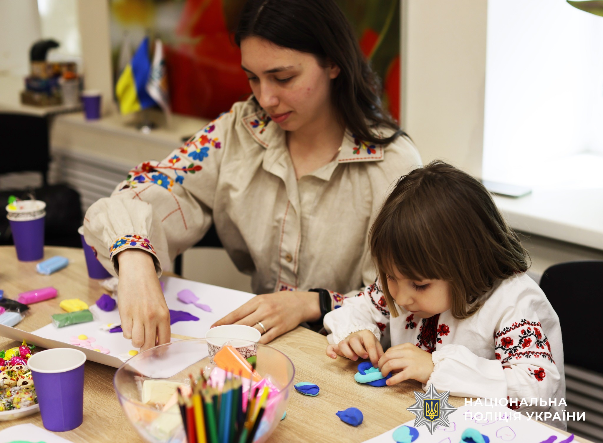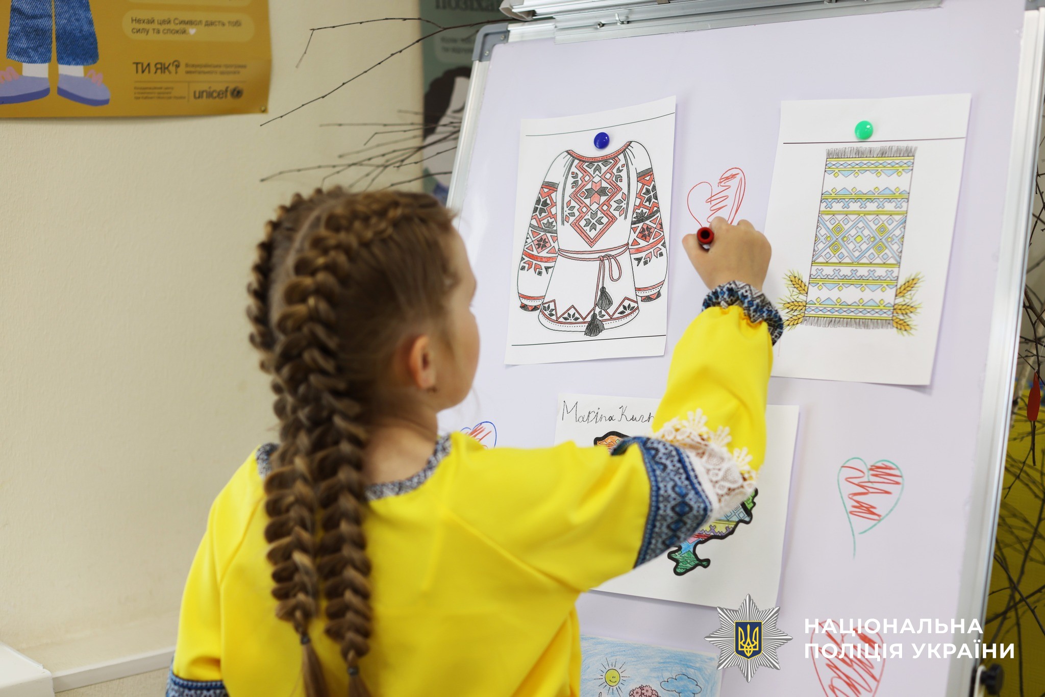 Поліцейські психологи з фахівцями простору розповіли маленьким відвідувачам закладу, серед яких були присутні діти поліцейських, про прадавні традиції створення та носіння етнічного вишитого українського одягу, який з давніх часів вважається оберегом кожного українця.