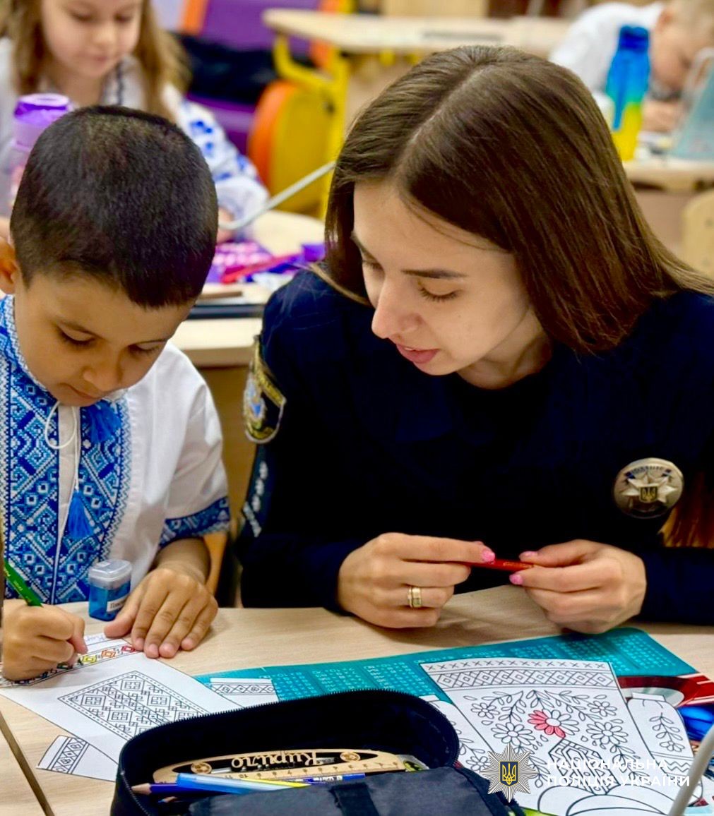 Дитячими руками - з любовʼю до Батьківщини: у Південноукраїнську поліцейська провела урок патріотичного виховання для ліцеїстів