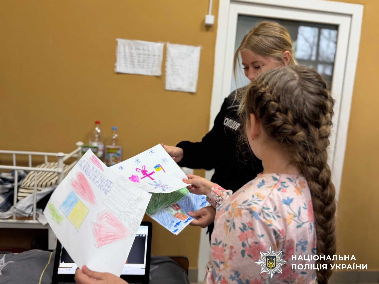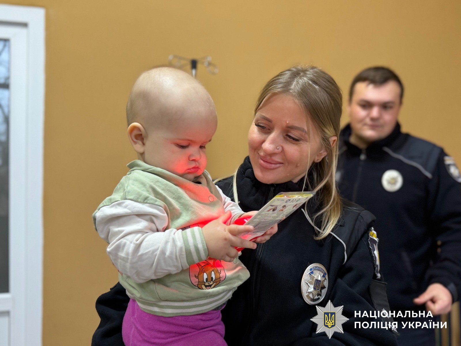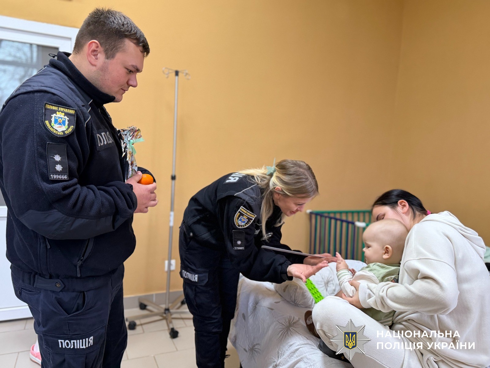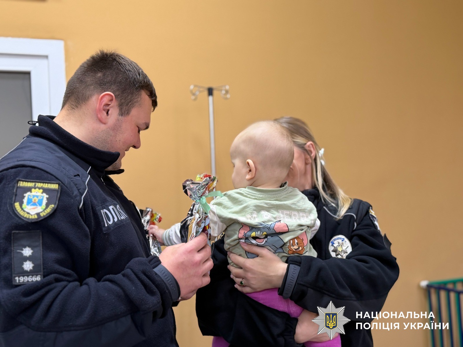 У Баштанській багатопрофільній лікарні, де перебувають діти, які проходять лікування та потребують особливої уваги й підтримки, поліцейські поспілкувалися з маленькими пацієнтами, поцікавилися їхнім самопочуттям і передали листівки ліцеїстів разом із невеличкими подарунками та солодощами. Це створило справжню атмосферу свята і хоча б на мить відволікло дітей від лікарняних буднів.