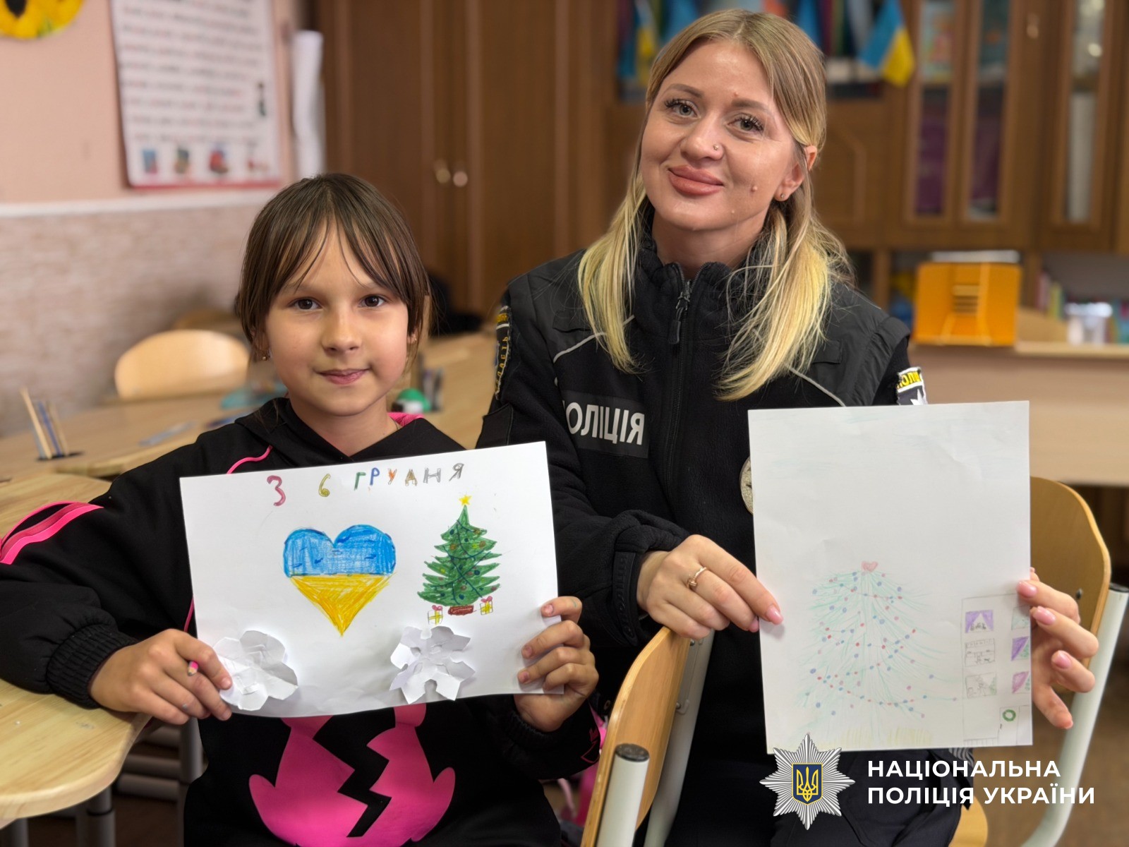 Ліцеїсти разом із поліцейськими підготували листівки з теплими побажаннями маленьким пацієнтам скорішого одужання, віри у дива, миру та того, щоб Різдвяні свята вони зустрічали вдома, у колі рідних і близьких.