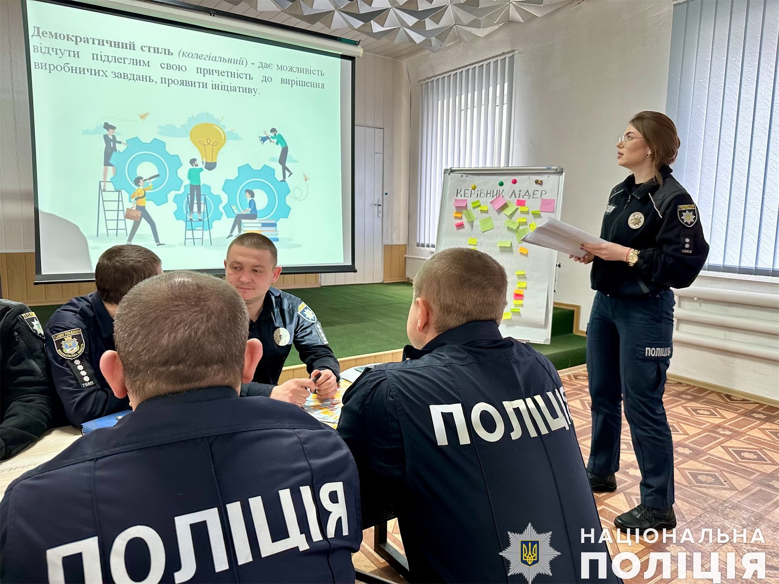 У рамках циклу тренінгів «Психологічні особливості керівника, стилі управління та лідерства» психологині кадрового підрозділу Первомайського райвідділу поліції Зінаїда Яковлєва та Аліна Бєлохвост провели для керівного складу правоохоронців навчальний захід.