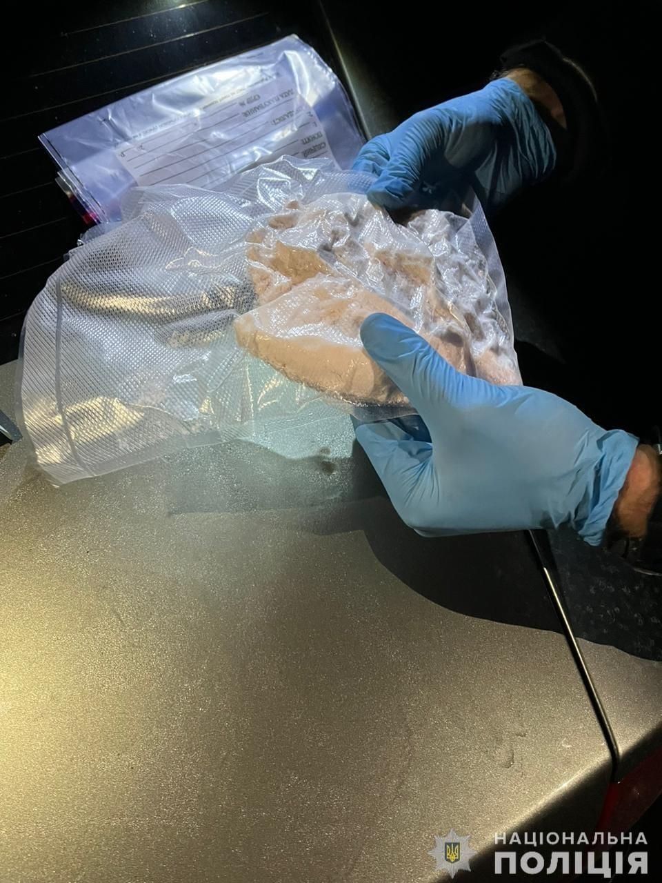 Для встановлення обставин та документування факту кримінального злочину на місце події прибула слідчо-оперативна група Миколаївського районного управління поліції, яка вилучила у миколаївця кристалічну речовину білого кольору вагою близько 300 грамів.