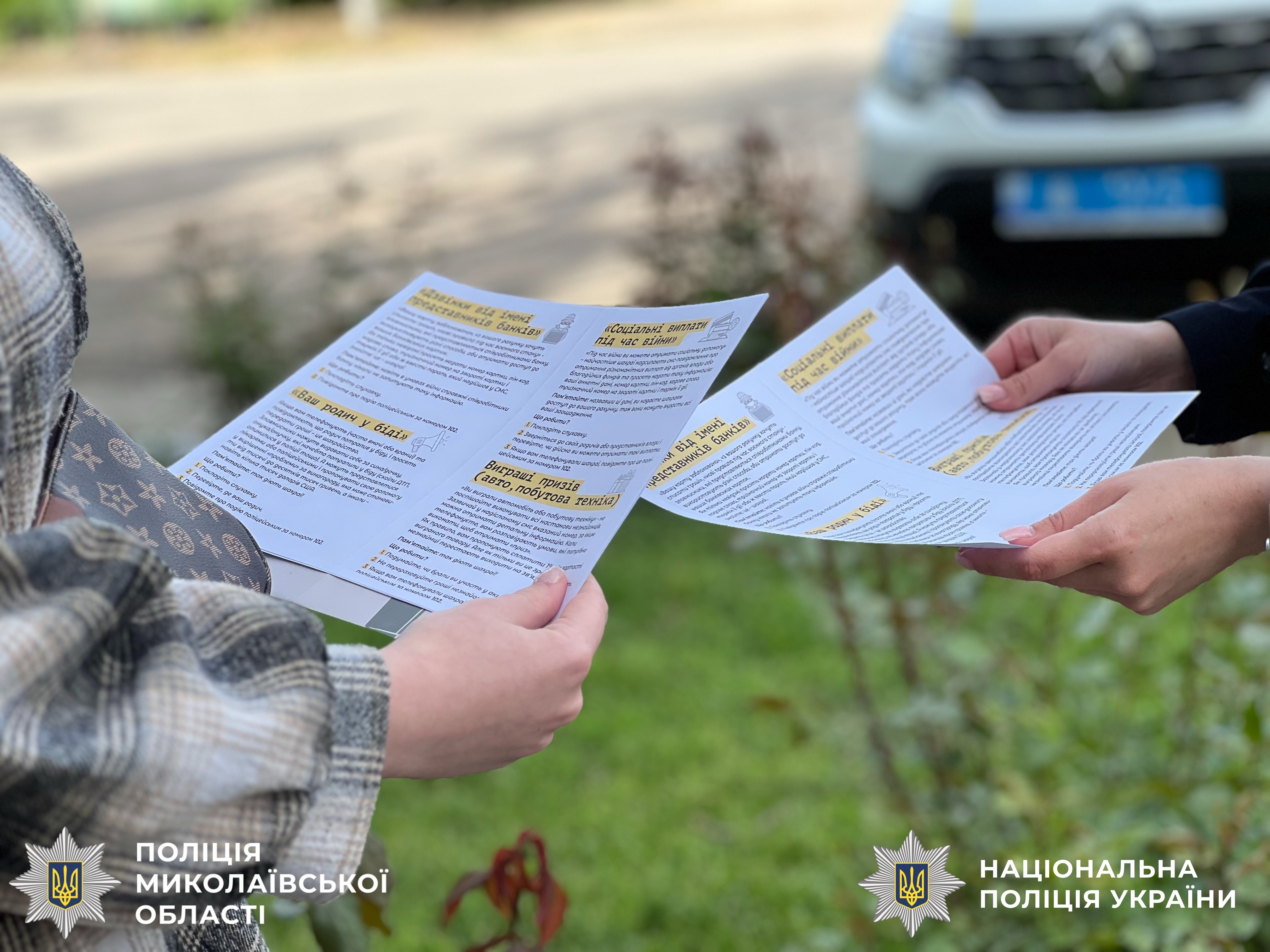 Поліцейські роздали інформаційні листівки з описом типових шахрайських схем та алгоритмом дій