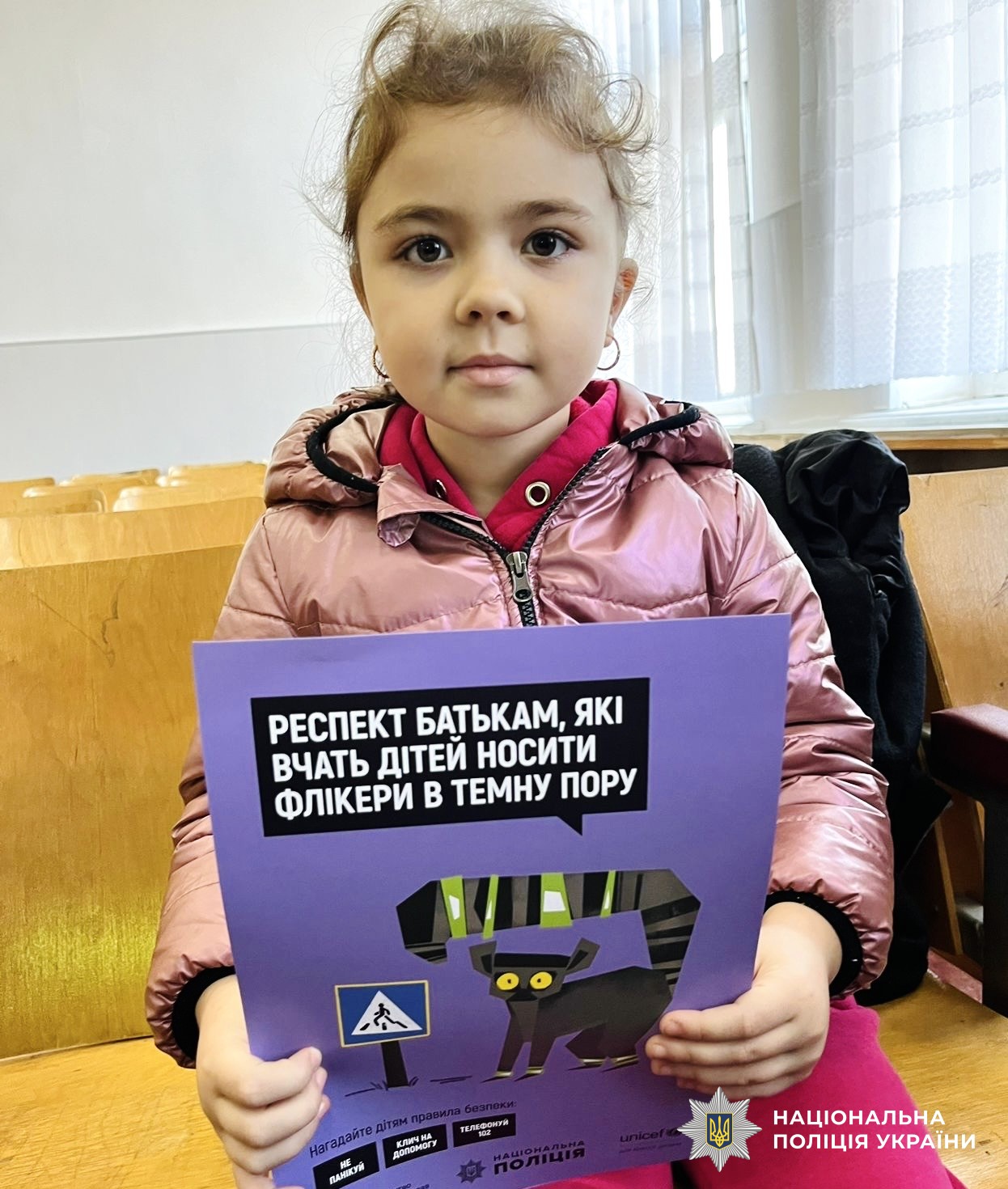 Для дітей молодших класів поліцейські окремо нагадали, що керуючи велосипедом чи самокатом, важливо рухатися лише у безпечних місцях, бути уважними, не виїжджати раптово на дорогу та обов’язково мати світлоповертальні елементи. Крім того, пояснили як безпечно поводитися в автомобілі: завжди використовувати паски безпеки та не відкривати двері транспортного засобу без дозволу.