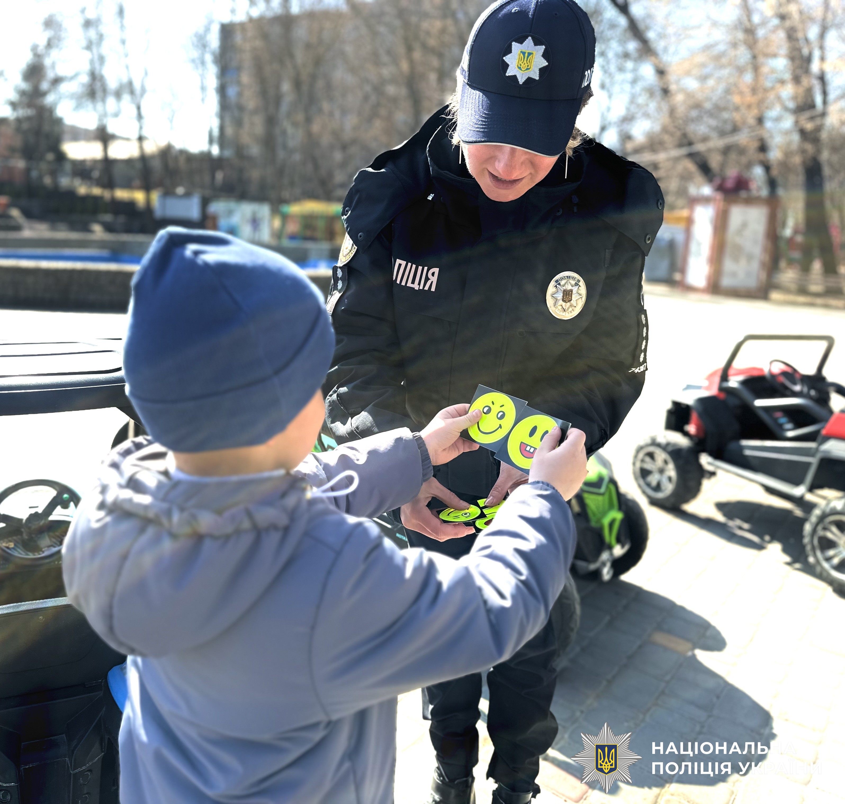 Інспекторка подарувала найменшим учасникам заходу флікери-смайлики, закликавши їх завжди бути уважними та обережними на дорозі.